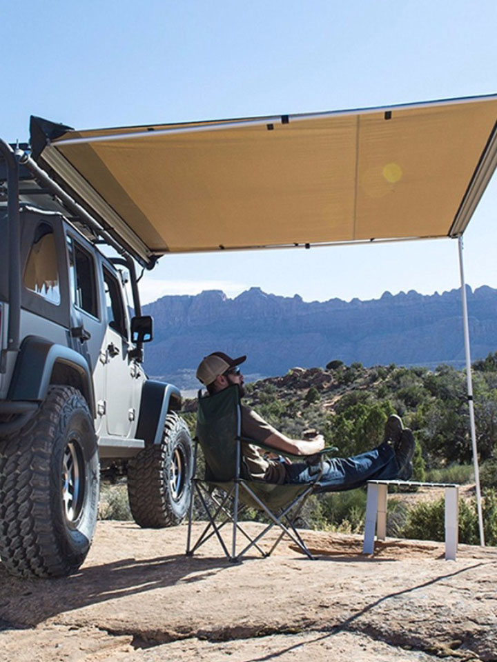 车载遮阳棚,可单独搭建,也可结合汽车使用,不挑车型。顶部泄风口设计,通风遮阳,抗风性能好。面料防雨处理,一帐多用;大尺寸遮阳棚,宽敞舒适,方便出行,享受户外。