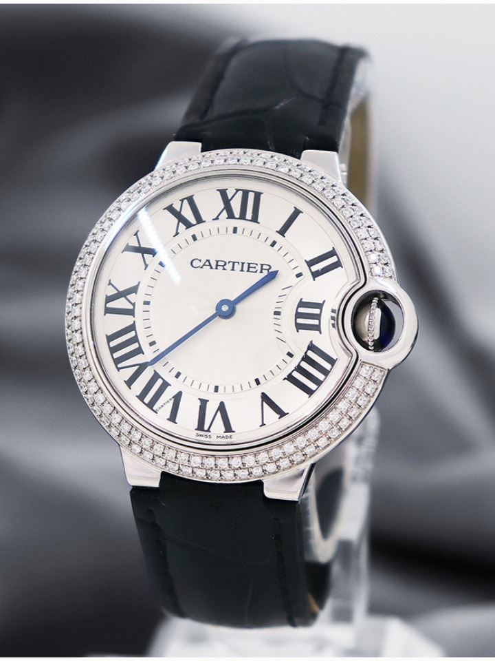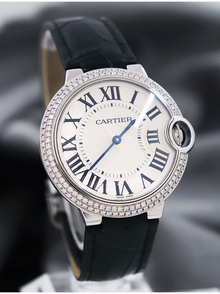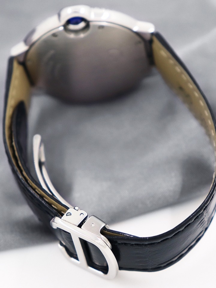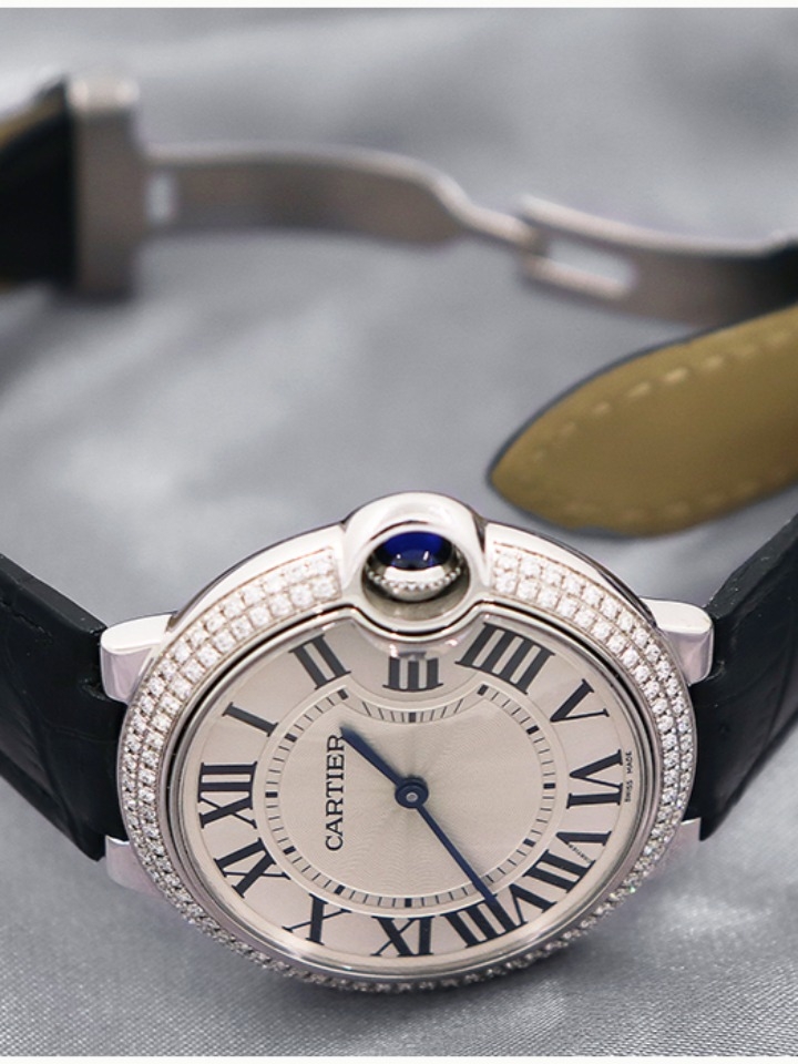 如气球般轻盈,如其守护的凸圆形宝石般湛蓝,卡地亚Ballon Bleu蓝气球腕表为男士与女士的袖口腕间平添了一份优雅。罗马数字时标在深邃的幽蓝表冠指引下偏离了轨迹。搭配抛光或磨砂链节表链而获得业内赞赏,评价曰风格细腻,格调高雅。