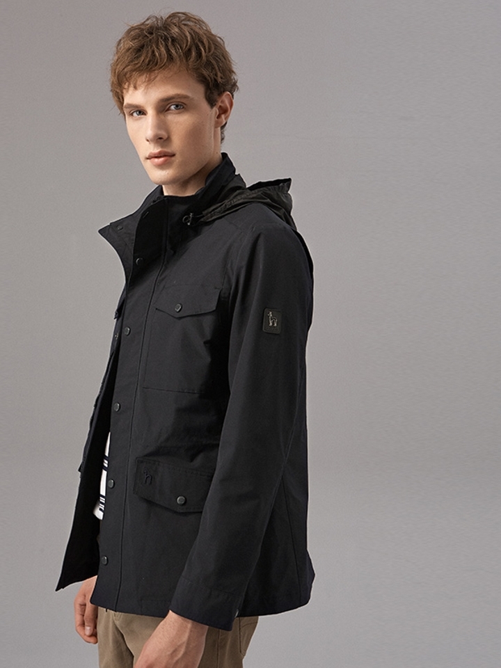 针对年轻人士的潮流品牌。这款休闲外套,藏青色的风格,给人沉稳内敛的气质感,细腻精致的剪裁,版型贴合流畅,可以很好地展现出男性硬朗挺拔的曲线,袖口及下摆的针织紧凑工整,穿着舒适。