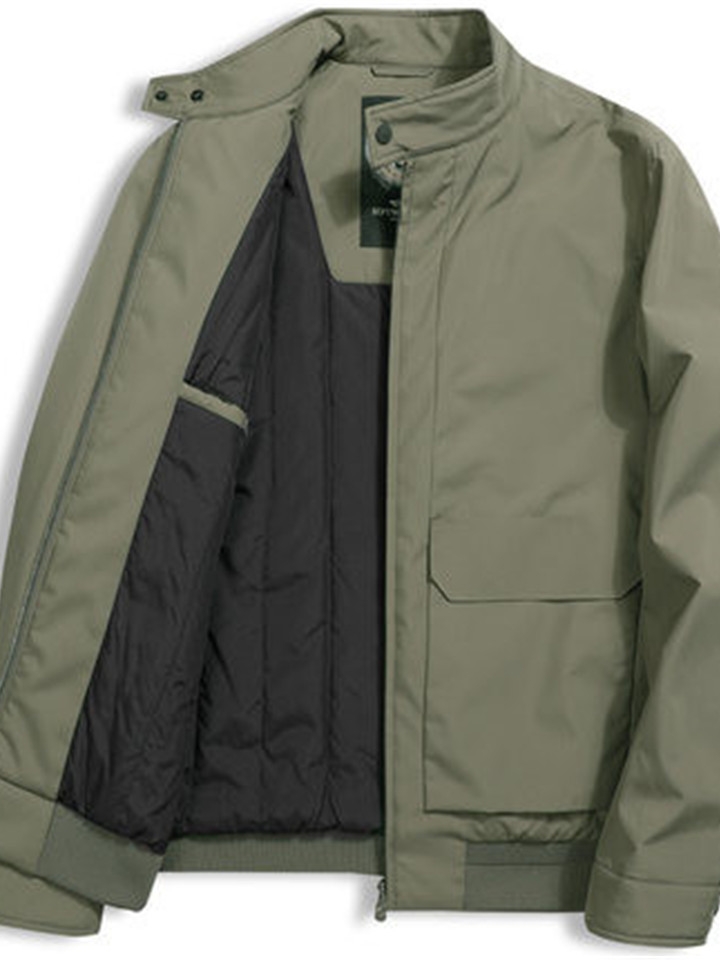 简约却不简单的一款通勤风夹克外套,沿用立领的款式,能够很好地修饰颈部线条,展现男士俊郎轮廓。严格生产工序,每一个线条细节都完美。人体学设计,方便实用,美观大方。