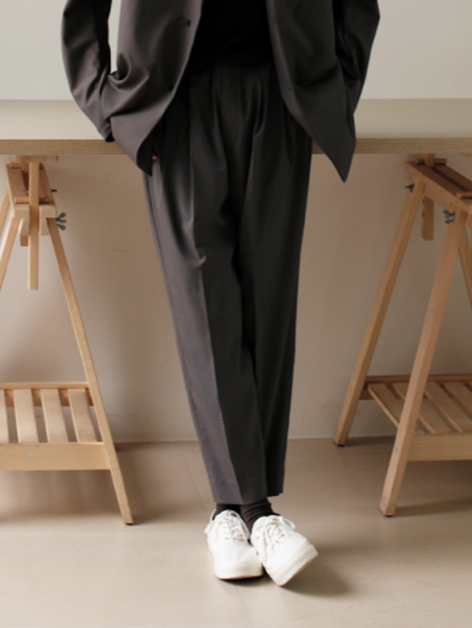 灰色系格纹和两边口袋,看上去更有条理。宽松版型和中腰设计,很好的提升舒适度。