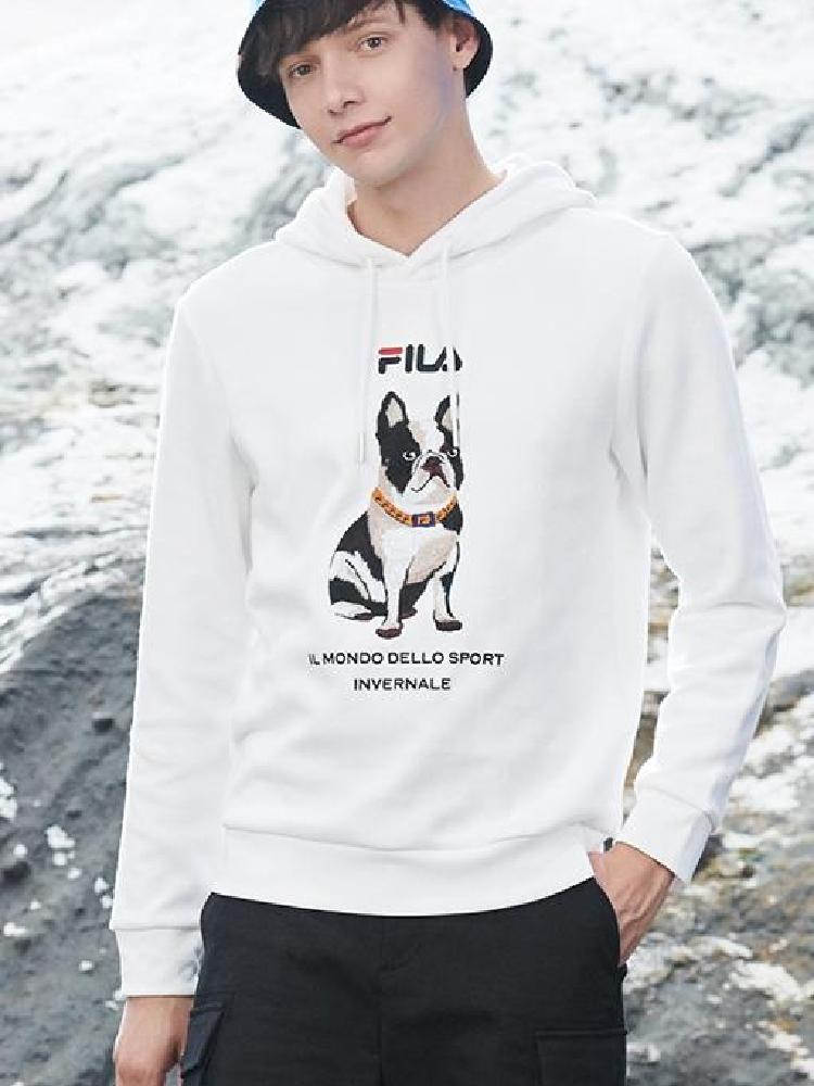 这款Fila的连帽卫衣采用棉氨空气层面料制作,布面平整,不易变形,上身感十分舒适,简单的撞色印花,提供简洁时尚感,连帽设计休闲大方在帽檐处增添了弹力抽绳设计,让帽子更加贴合头部,提供强保暖效果。