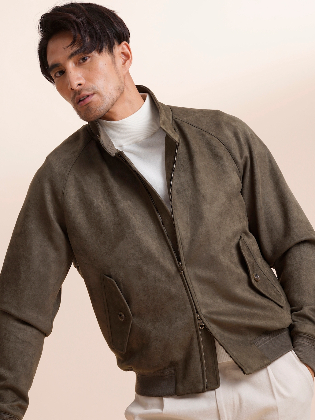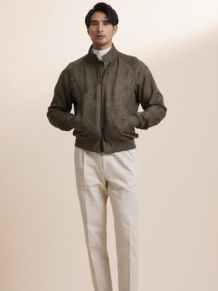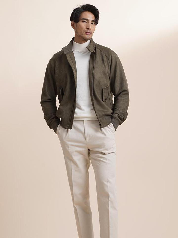 外套类目的夹克单品,我们从未放弃过对于新颖面料的尝试探索,不易起皱、光泽饱满和谐、触感顺滑舒适的麂皮绒面料,正是当季理想方案。