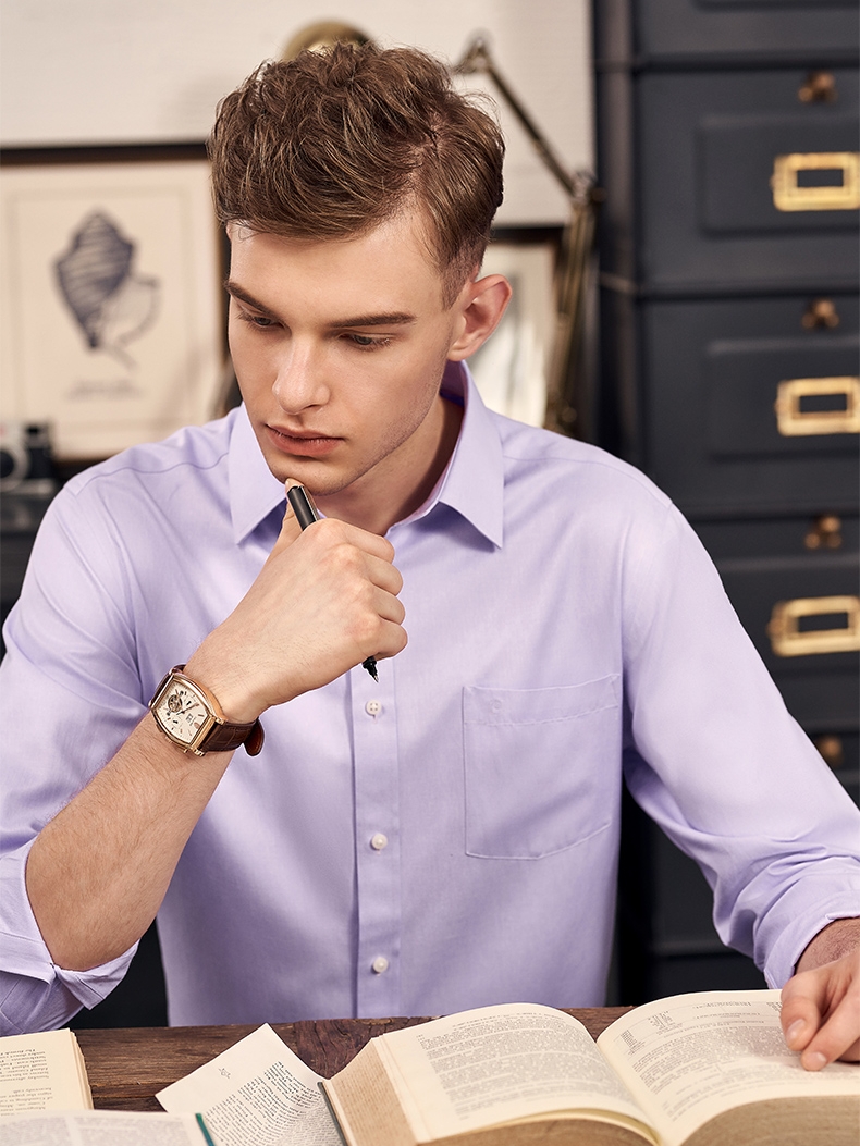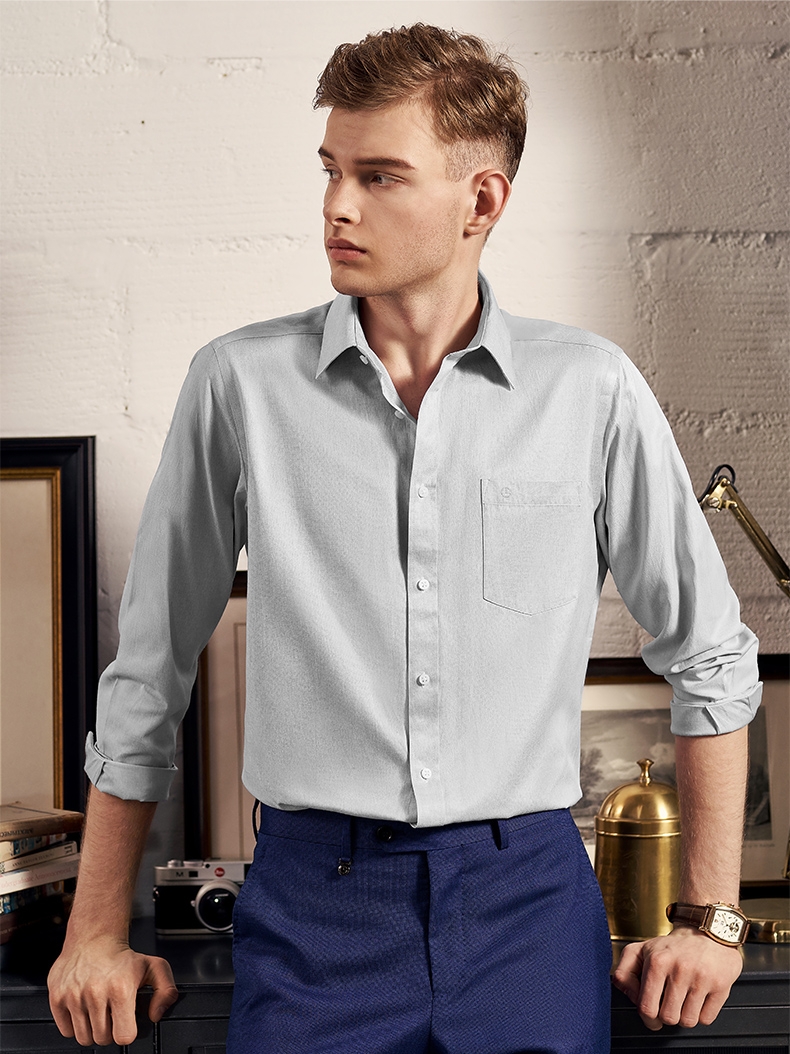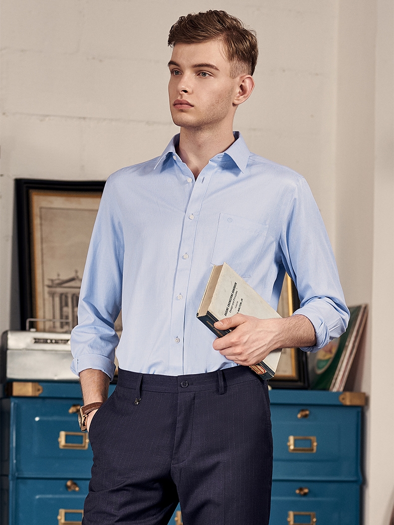 柔软薄款面料是简单纯色长袖衬衫里最重要的因素,当一件经典衬衫不需要改变什么就可以是百搭时尚款式的时候,它的面料就成为最重要的因素。