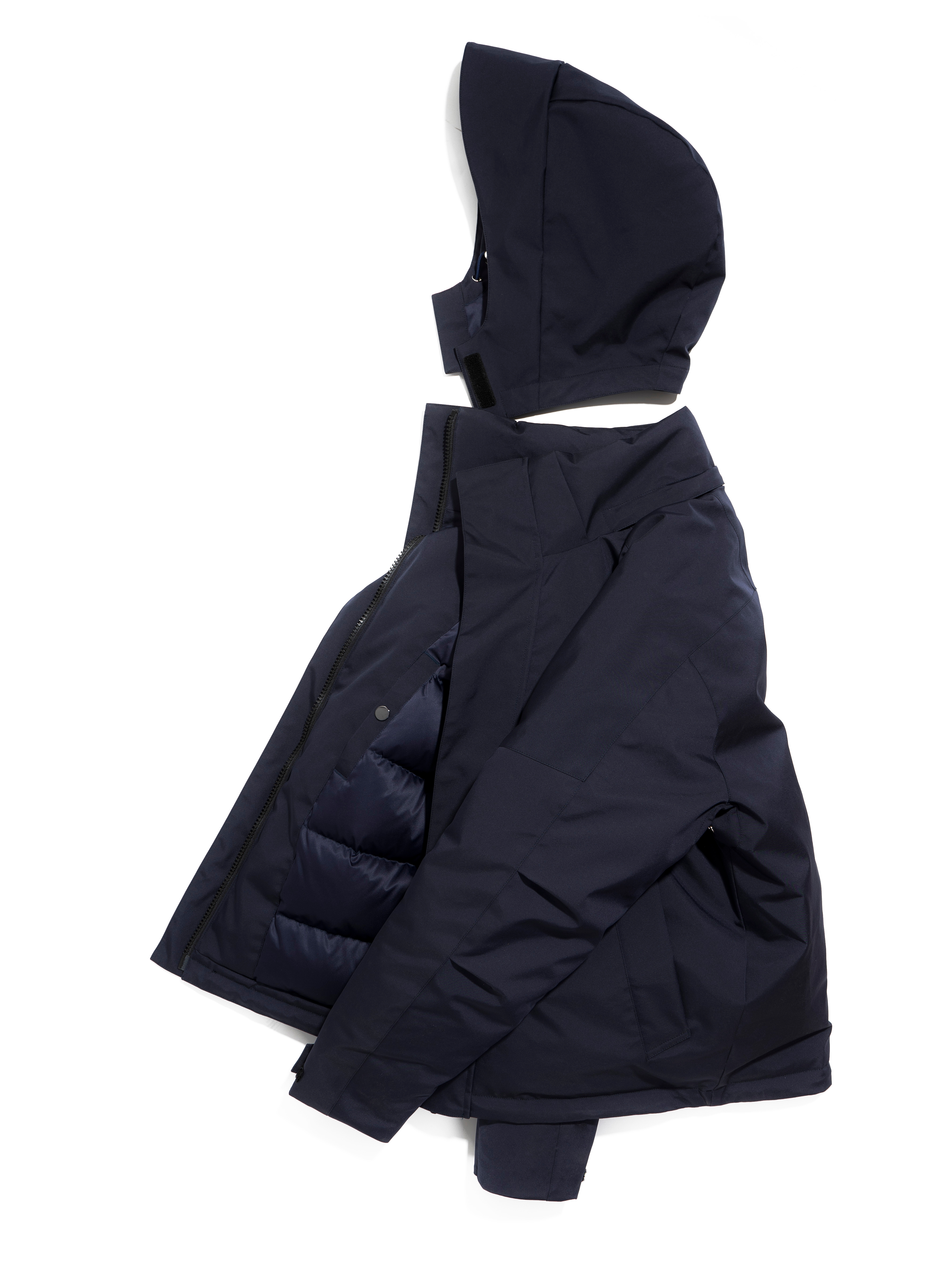 区别于用白鸭绒填充的羽绒服,这款是白鹅绒的填充里料。鹅绒纤维组织更细,更软,蓬松度更赞,保暖性也佳。结合及小腿的长度,将温暖包裹全身,防风御寒效果更赞。
