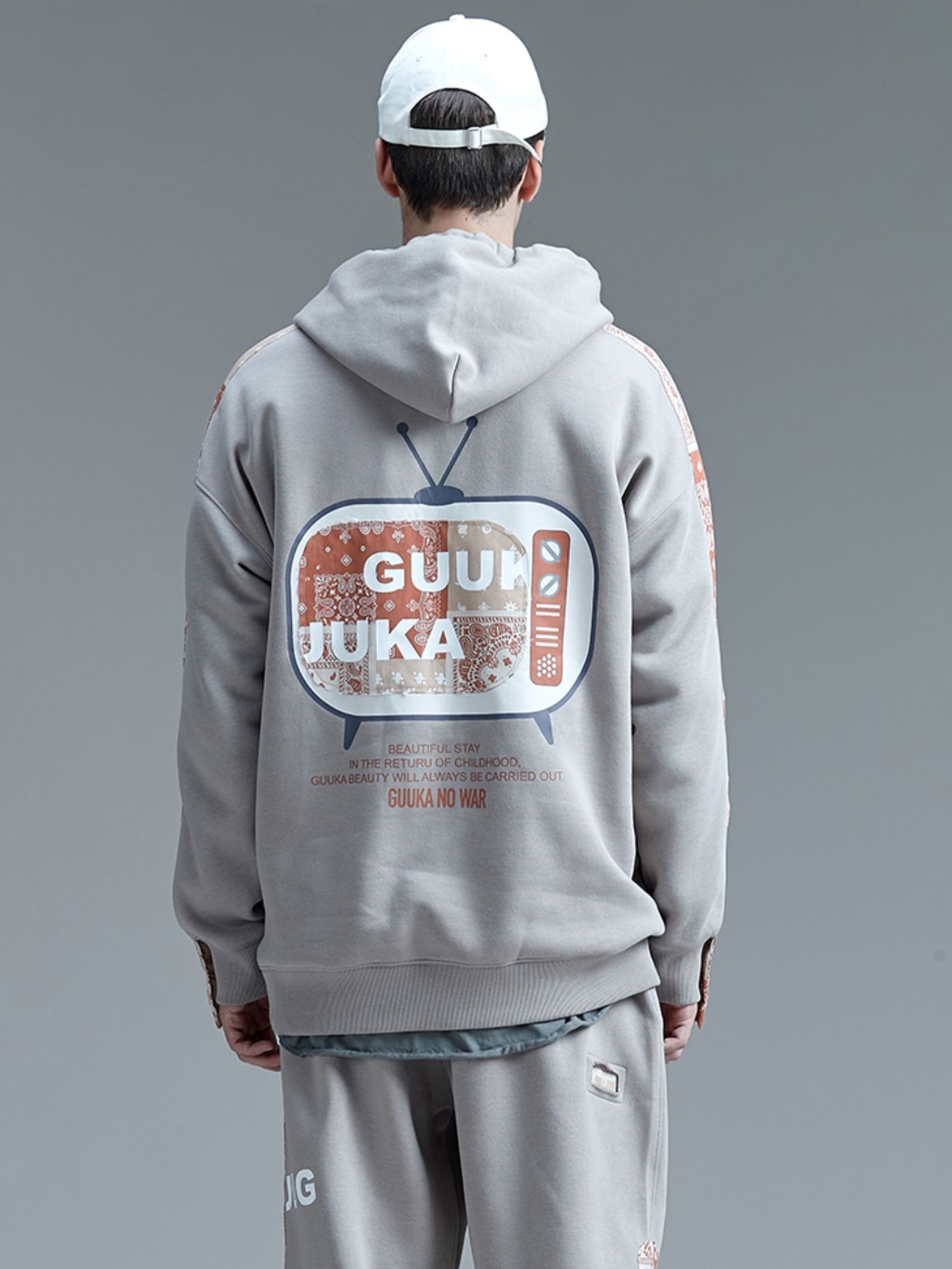 巧妙利用了不对称的印花图案点缀衣身,让简单的款式不显单调死板感。松垮垮的版型剪裁,配合内里加绒的处理,带来舒适温暖的穿着体验。
