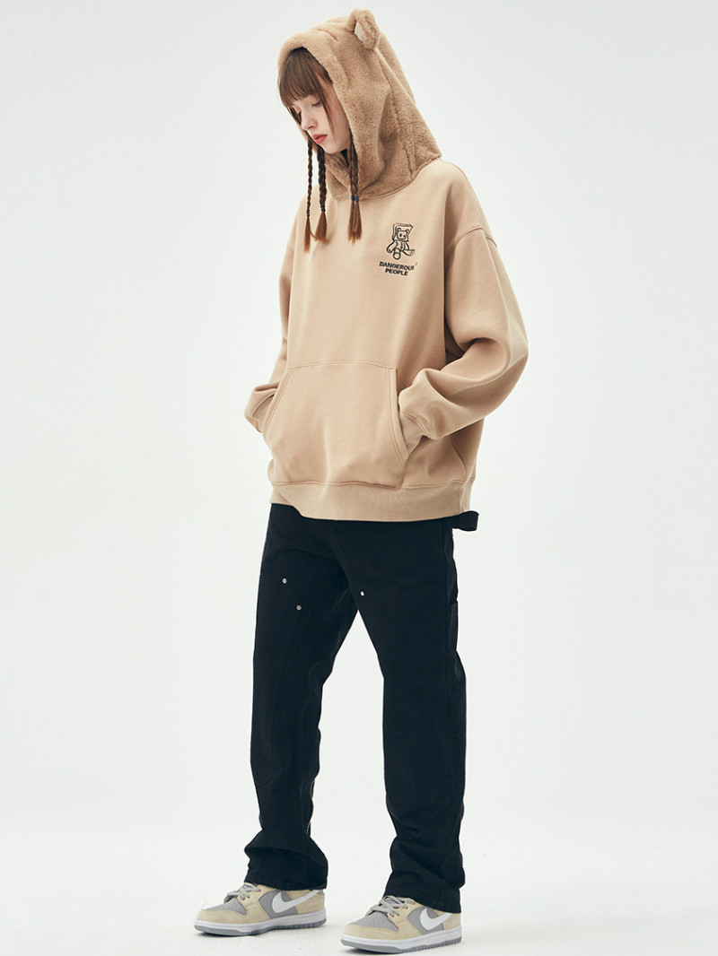 卡通小熊图案休闲卫衣,时尚大气。前胸卡通小熊图案小熊耳朵,俏皮可爱,充满童趣。方便穿脱和凸显衣衣品质。