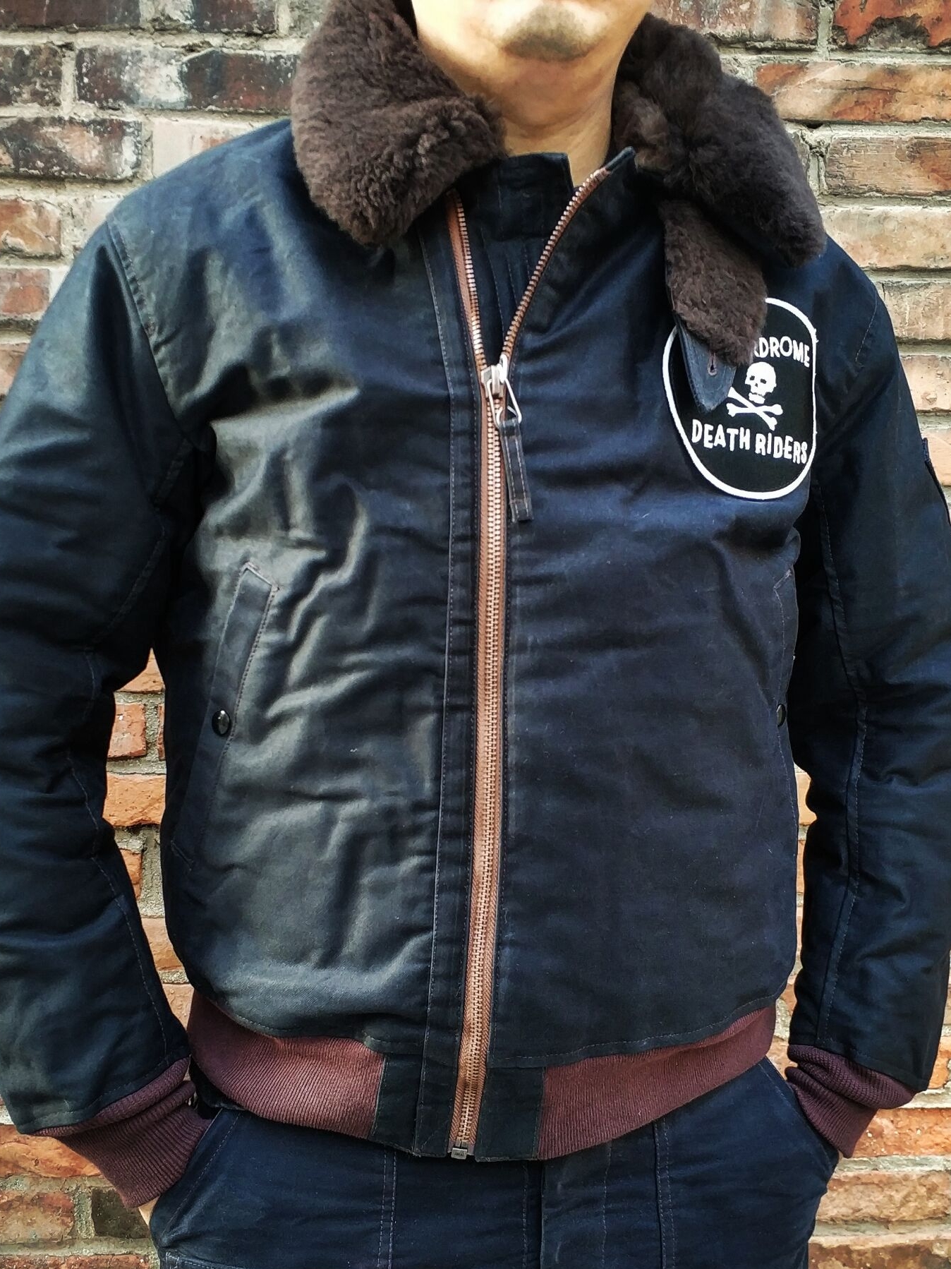 骑士系列重磅过蜡轻放水机车夹克,复刻经典机车夹克松紧领口设计,怀旧古铜冲孔戒指和四合扣,工艺细致。加大四袋设计,袋盖剪裁,立体袋型,厚实富有