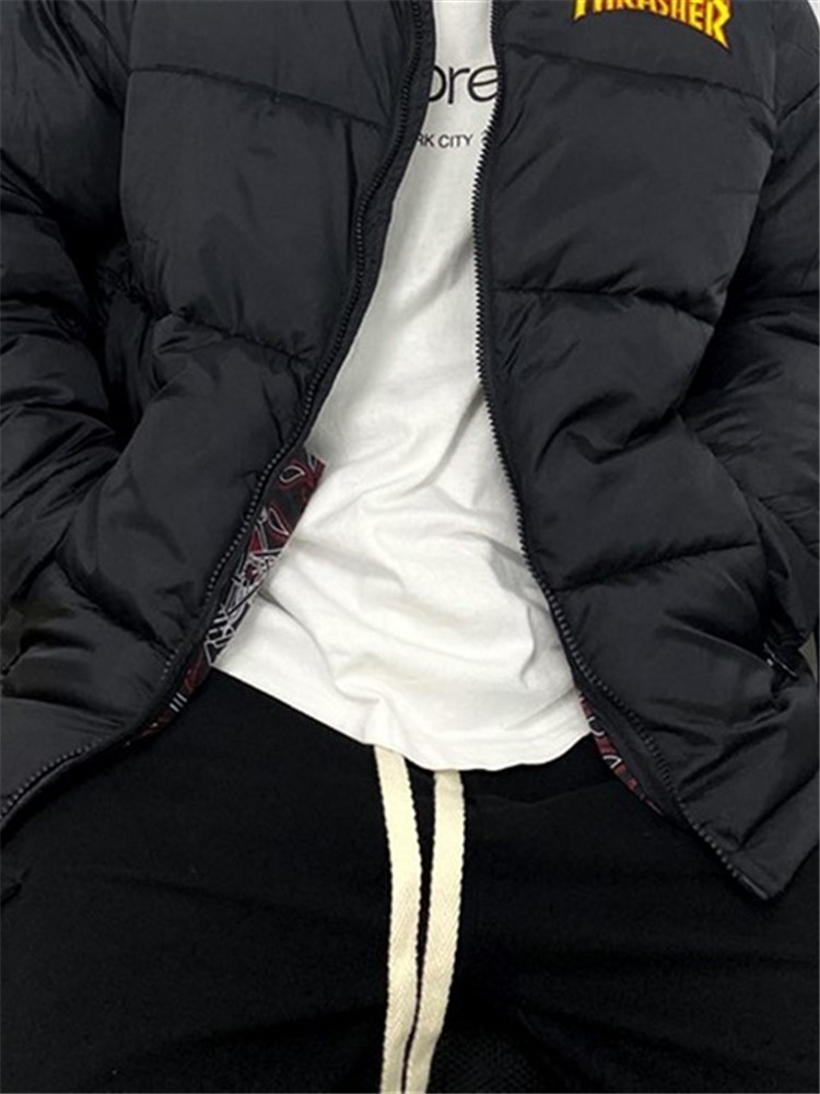 夹克采用了经典的棒球领设计,搭配上红色的印花点缀,更显时尚感采用了双面的设计,穿着舒适,穿着起来更加的舒适。