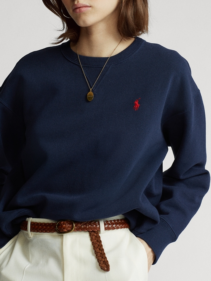 毛茸茸的绒布套头衫,柔软舒适又保暖;宽松的版型,休闲舒适,藏肉显瘦;圆领设计,穿脱方便。