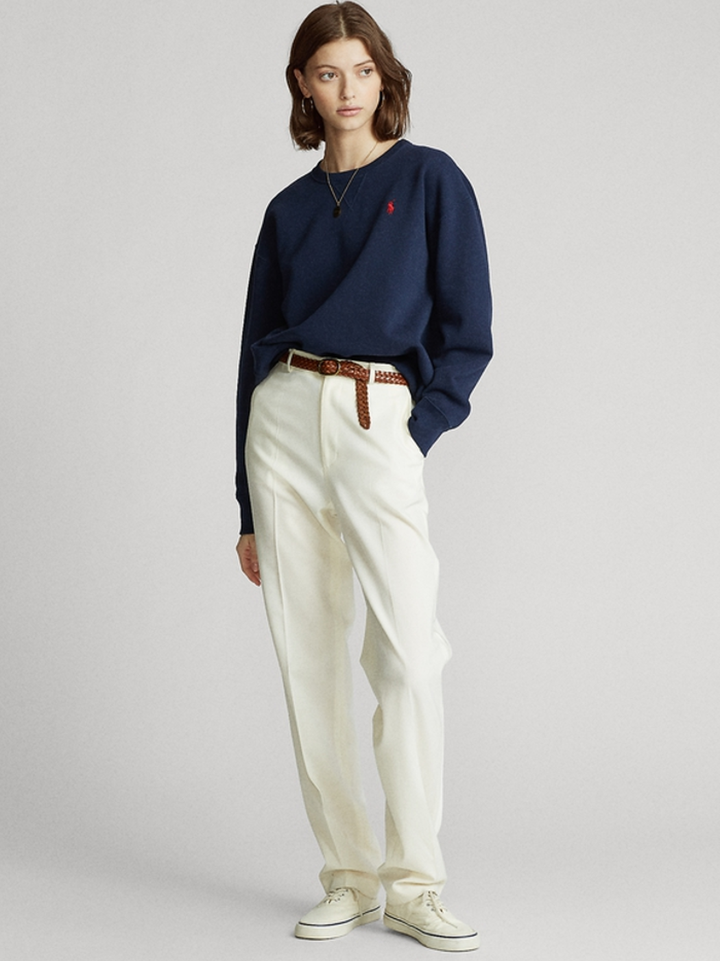 温暖舒适的绒布圆领卫衣,带给身体一丝丝暖意;搭配高腰直筒裤,脚穿平底鞋,彰显低调内敛的气质。