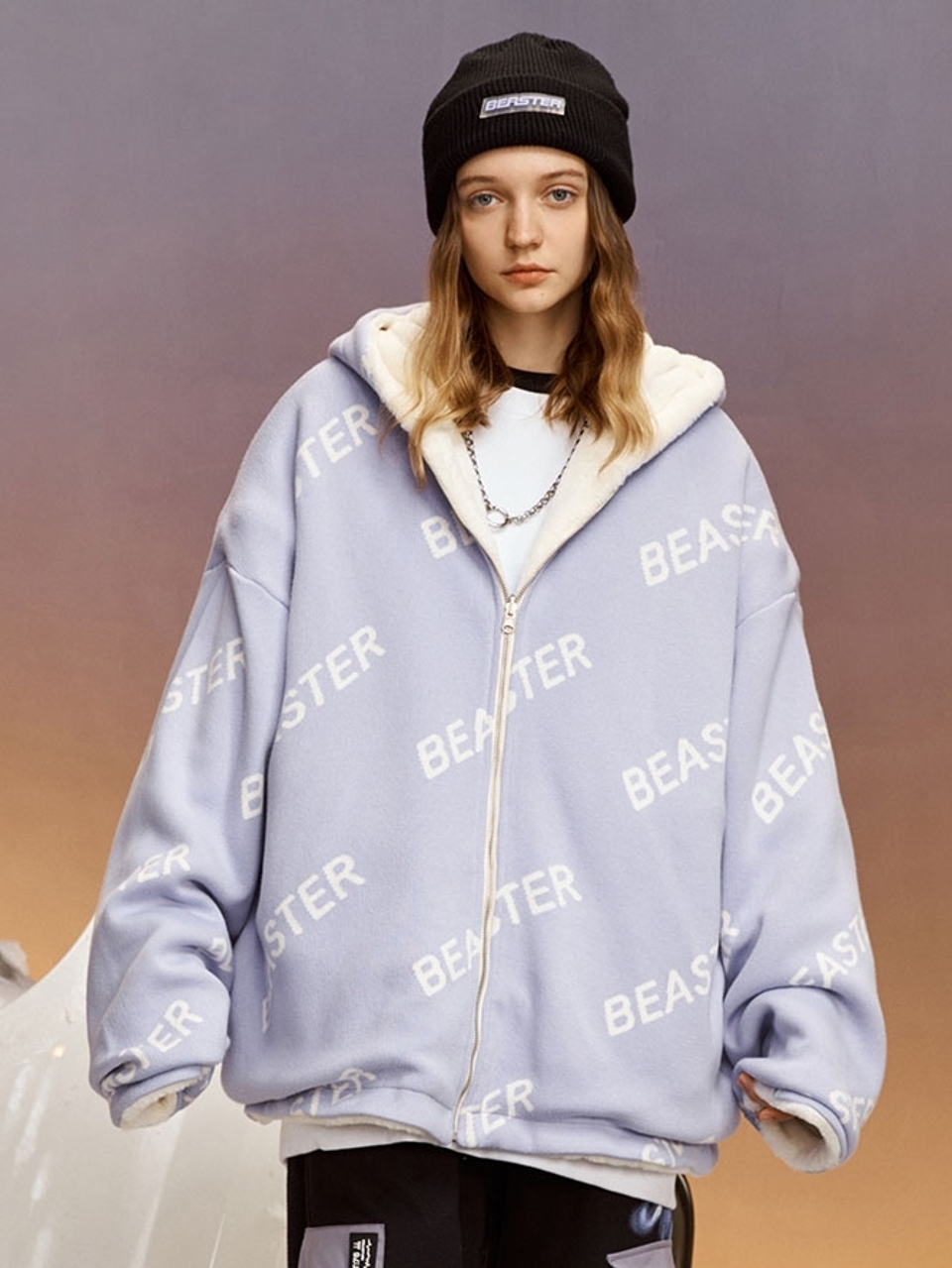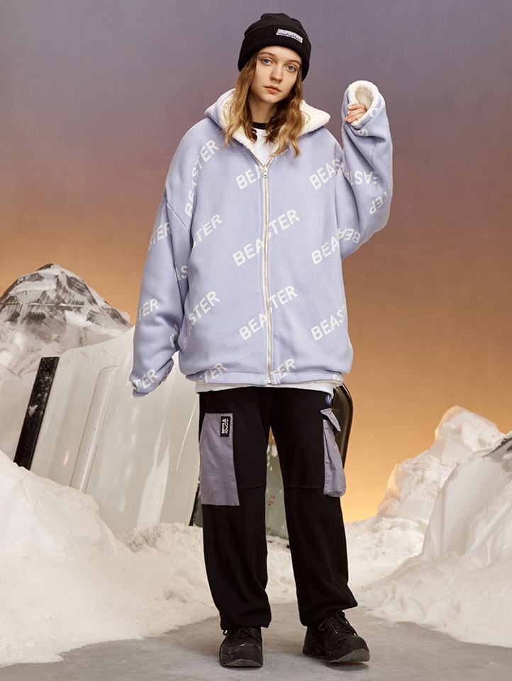 此款外套内里则添加羊羔毛作为保暖物料,提升在冬季的御寒指数。背后悲伤的鬼脸印花图案,充斥着极强的品牌个性。