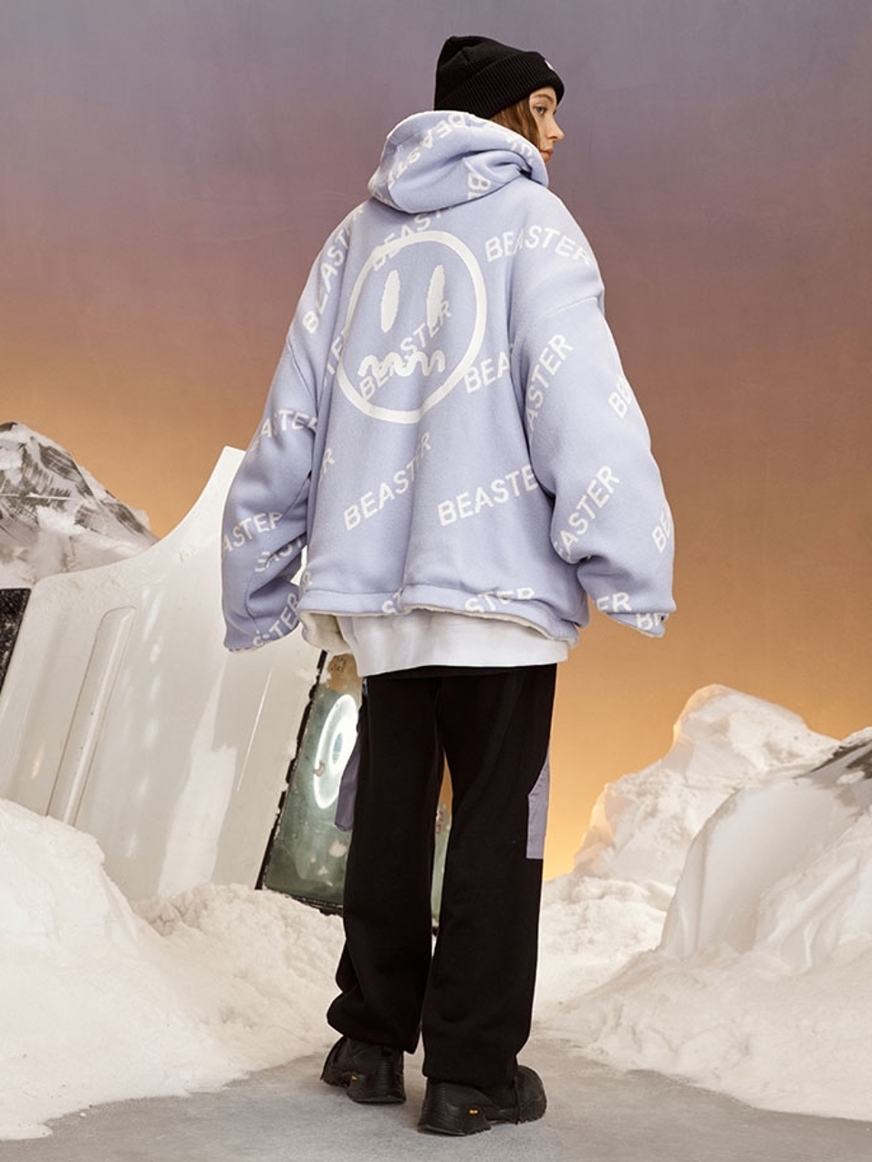 表情图案的设计,使整件衣服的潮流气息显露无疑。结合宽松的版型,上身显瘦有型,而且男女都可以穿,搭配情侣款是不错的选择喔。