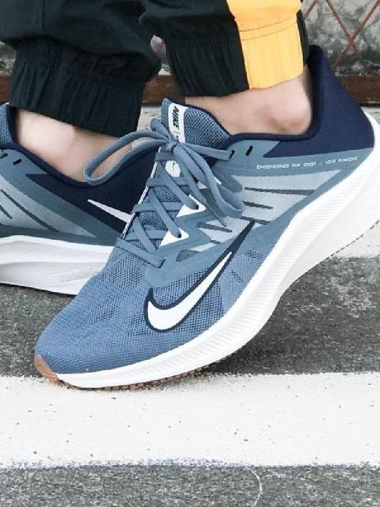 这款男子跑步鞋以浅灰与宝蓝拼接而成,小清新气息浓郁。以网布与超纤打造的鞋面拥有很好的透气效果,跑步过程清爽不黏脚,结合系带设计与织物内里,打造完美的包裹感受,另外搭载MD大底,缔造卓越缓震性能,让跑步过程更加健康安全。