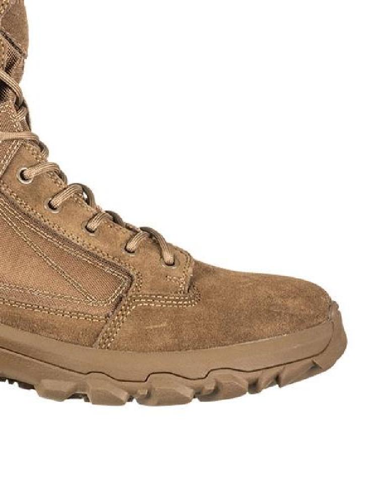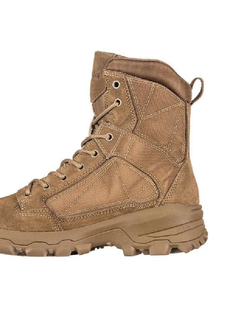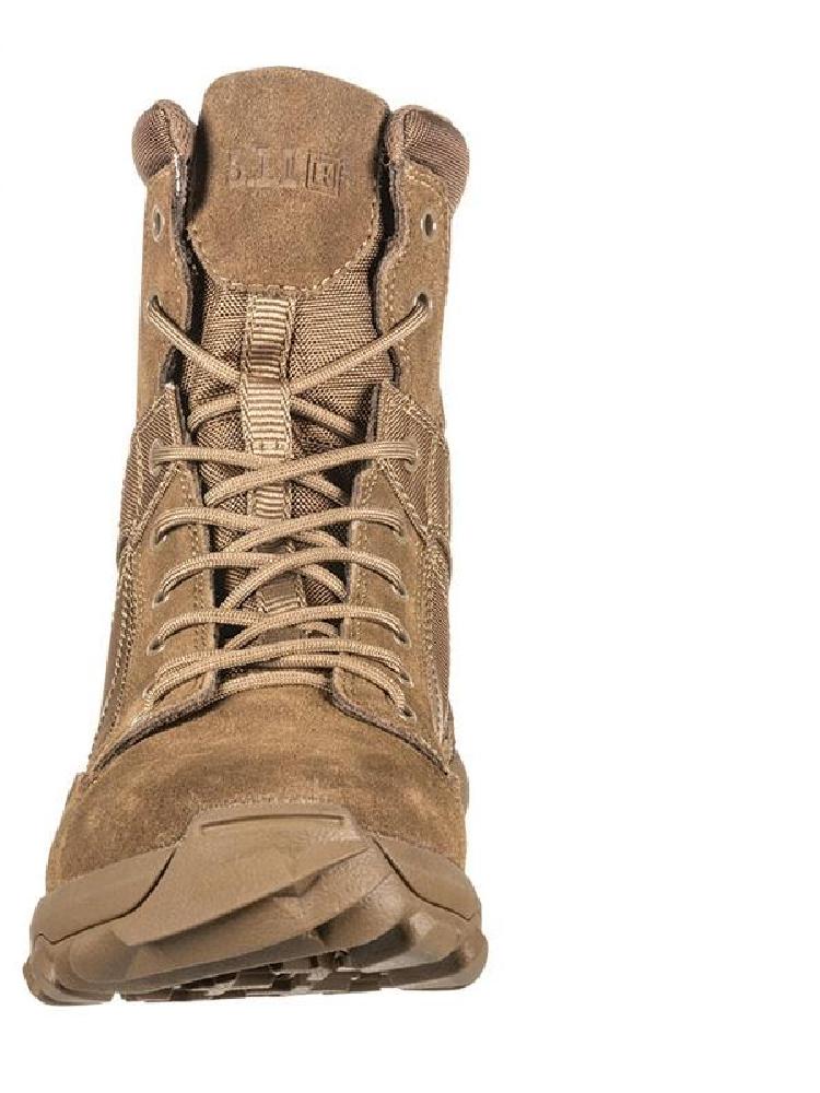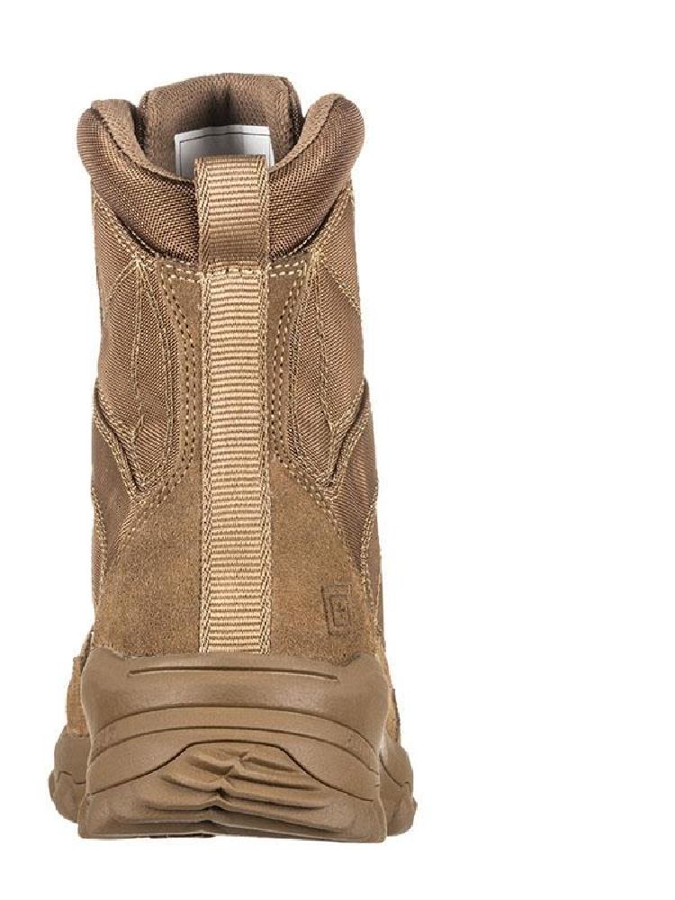 此款5.11轻便6寸沙漠战术靴,采用 Hypertext?透气尼龙网布,磨砂皮和尼龙制成,侧边拉链,隐藏式战术袋,抗菌吸湿排汗内里,抛光优质加固皮鞋头,半钢鞋跟,防滑、防油静音大底,注模中低,5.11减震系统,开孔泡沫缓冲鞋垫。