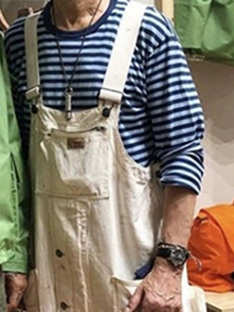 这款背带裤松松垮垮地呈现出一种日式经典的阿美咔叽风格。有着精细的车工走线和细致的裁剪,穿着也是非常的舒适。
