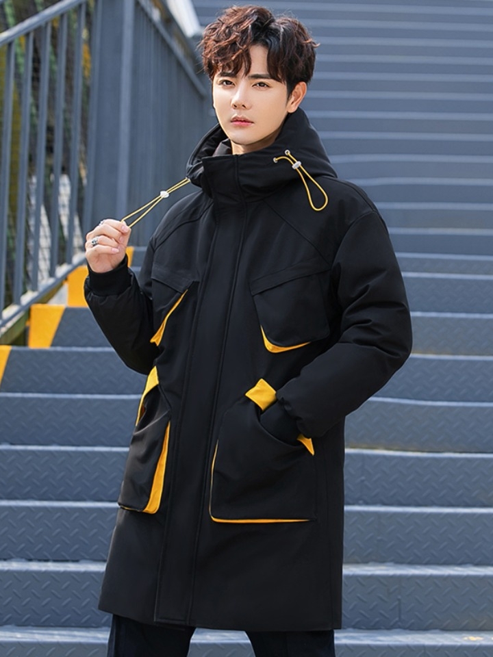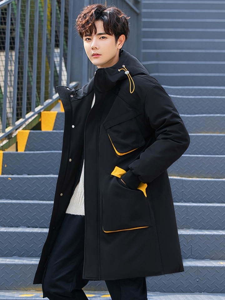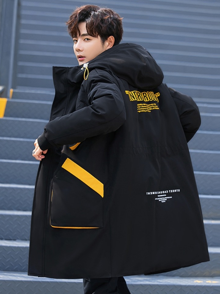 舒适柔软的毛领,手感超级好的,背部精美印花,尽显青春个性,长款羽绒服,包裹到膝盖,让你整个冬天都暖暖哒。。。。