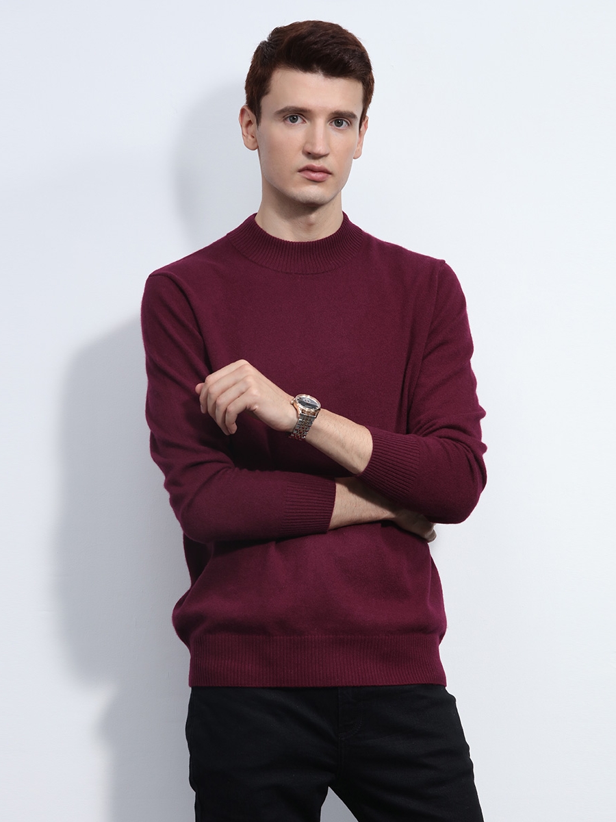这是一件高领的纯色羊绒衫,弹力修身,有很好的保暖作用,款式经典但不老气,穿上让人感觉很舒适,又显得很时尚。