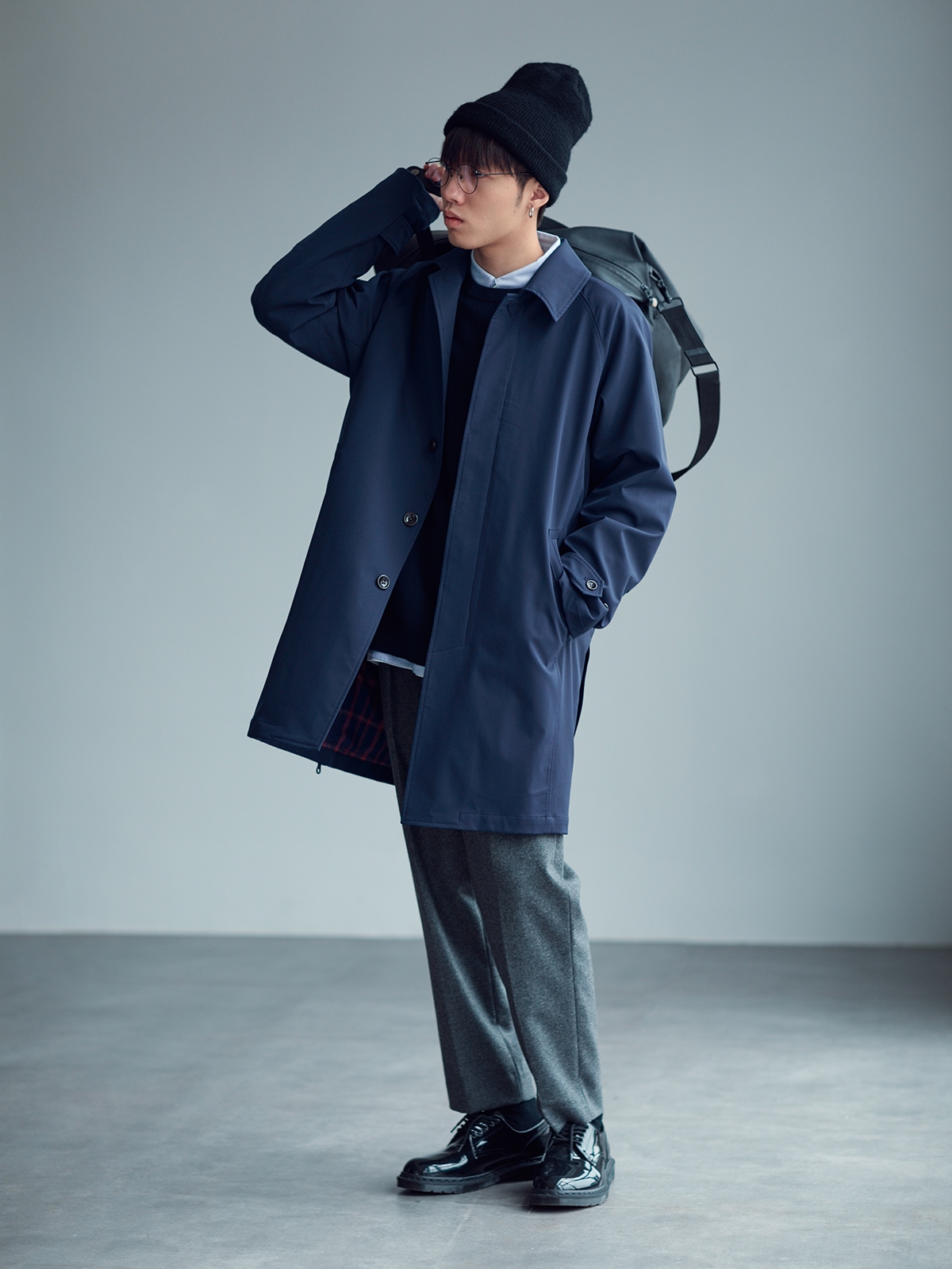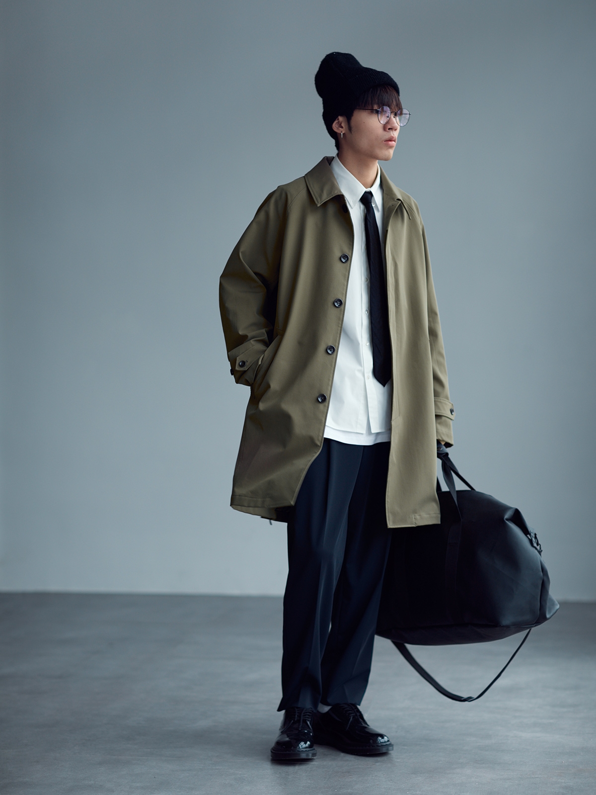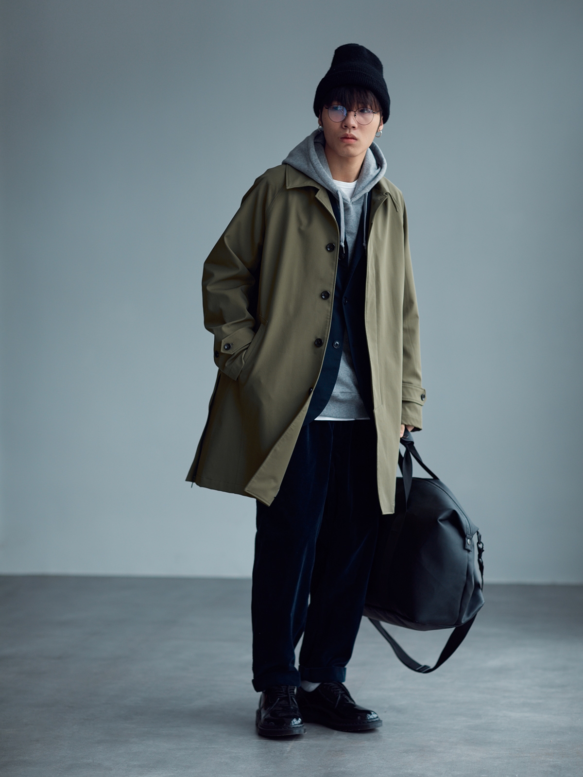 经典的拉格伦大衣版型,最早是为拉格伦爵士量身定制的一件斜纹软呢狩猎外套,标志性的单排扣设计和可扣合的防风领口让爵士在打猎时能有效的避开雾寒。
