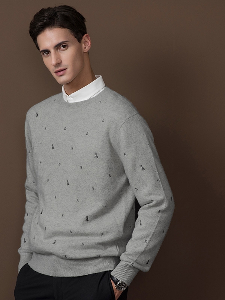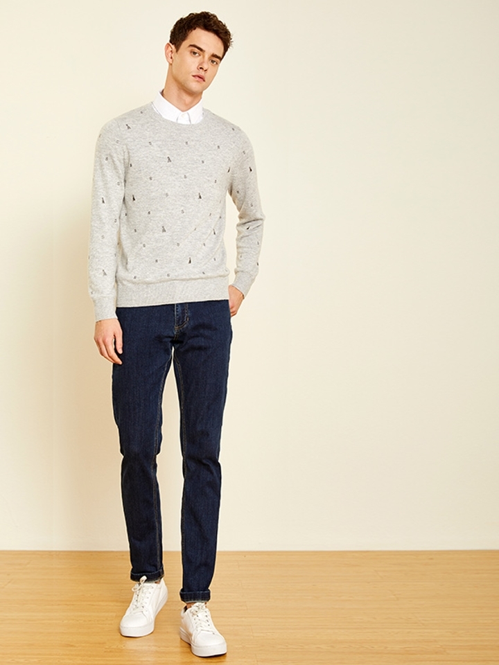 此款韩版男装套头毛衣,采用100%全棉棉线,舒适保暖,圆口罗纹领,织面舒适平整,衣袖完美衔接
