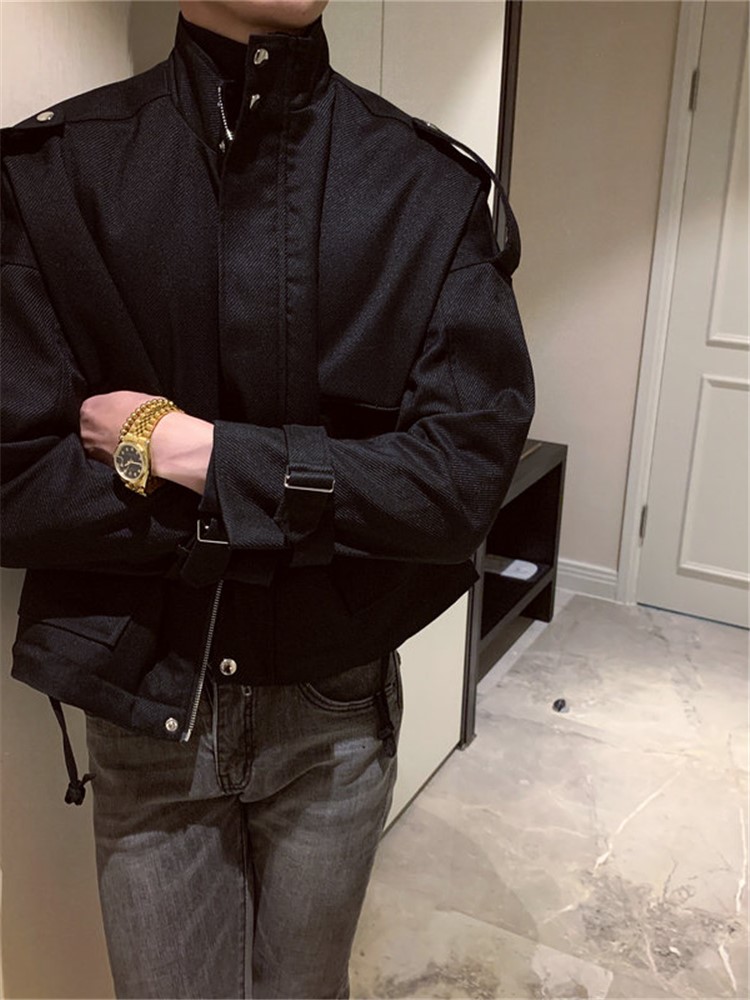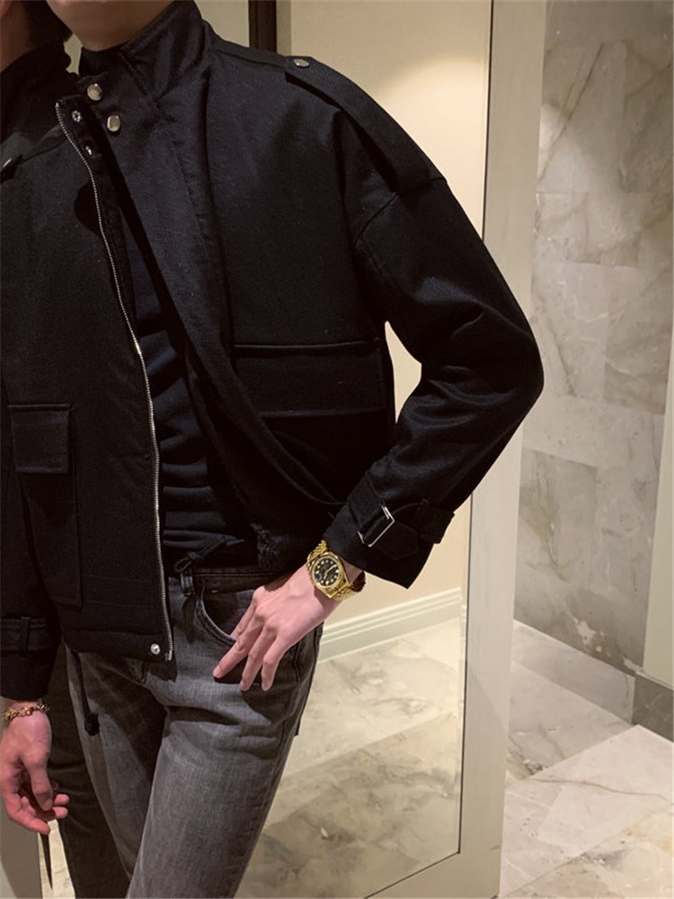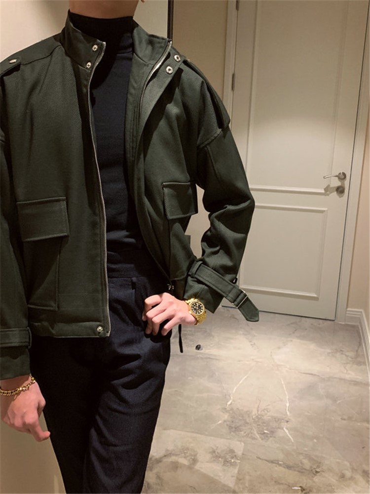 夹克款式,穿着帅气有型,短款外套,拉长身材比例。
