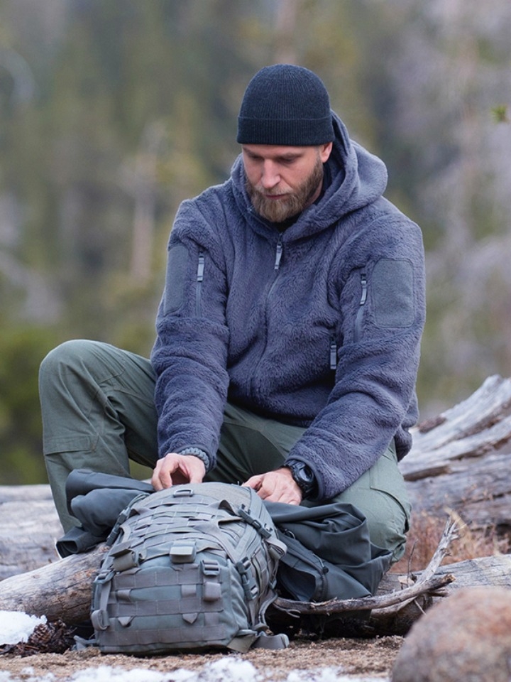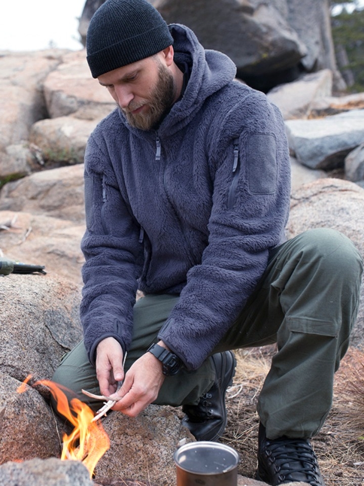 这款外套采用仿生学的特性设计,可以很好的融入户外,柔滑的毛绒就如动物的皮毛,柔软舒适,而且十分透气。长毛的舒棉绒,灵活性和保暖兼顾,战术就是无需多言。大口袋的装载设计,让你携带物品更便捷,让战术穿着、城市通勤都适合。