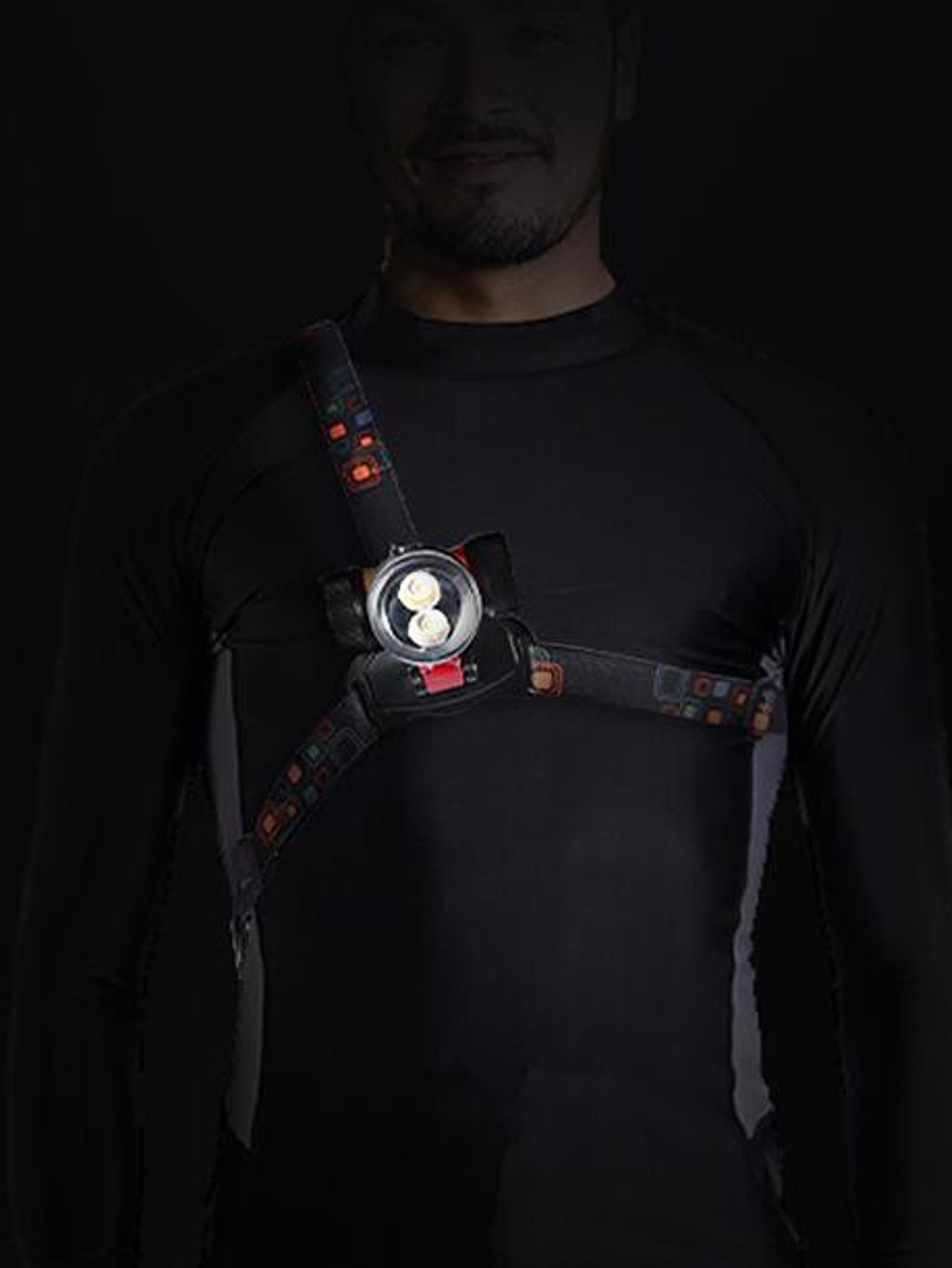 头灯亦是潜水胸灯,使用长带立马变胸灯,佩戴更加轻便,一灯多用,人性化设计,佩戴更加舒适便捷,轻量化设计,还可有效缓解重量,保证头部舒适无压力。