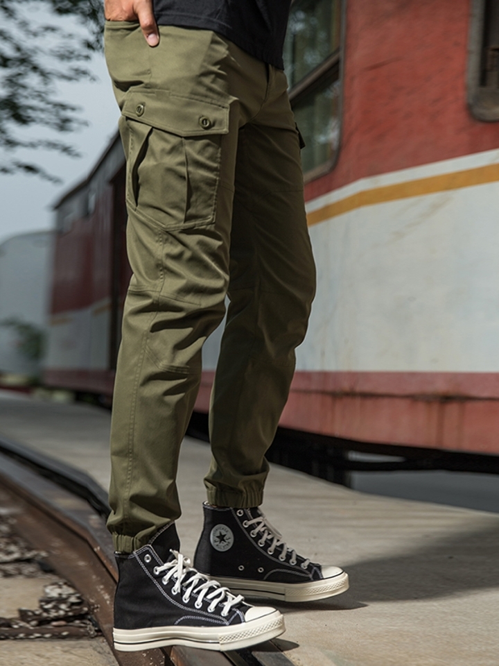 军绿色战术裤,永远是军迷世界的宠儿,束脚的设计一改以往战术风格的松垮,上身效果更具潮男气息。