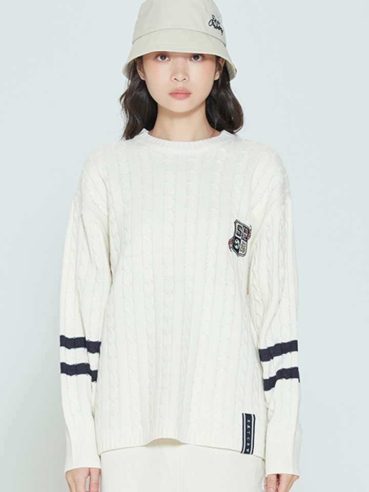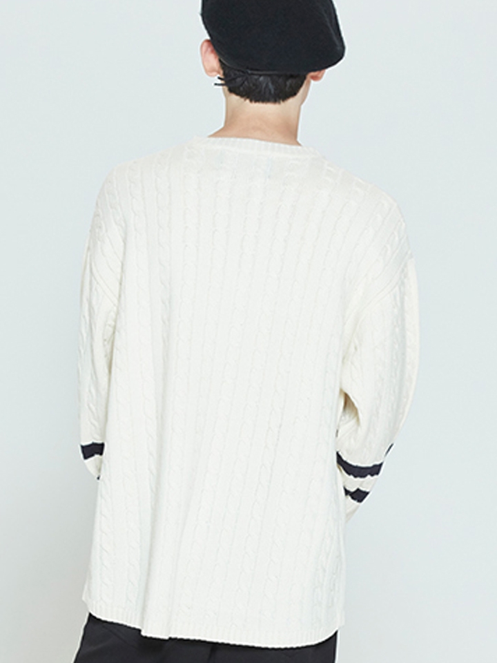 米白色的毛衣袖子上面加以简约的黑色条纹,尽显时尚韩范。