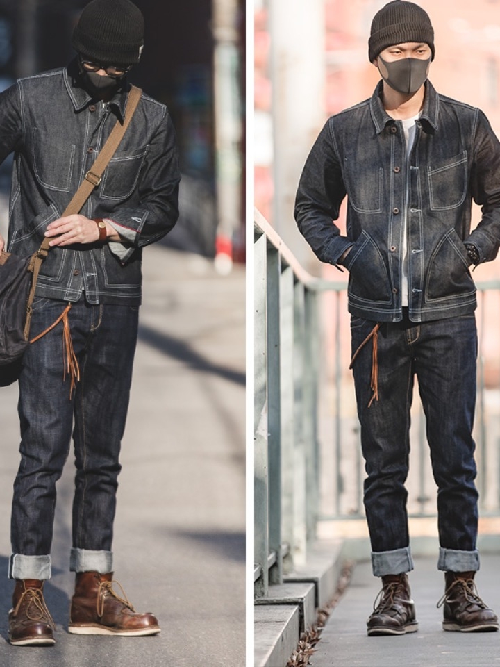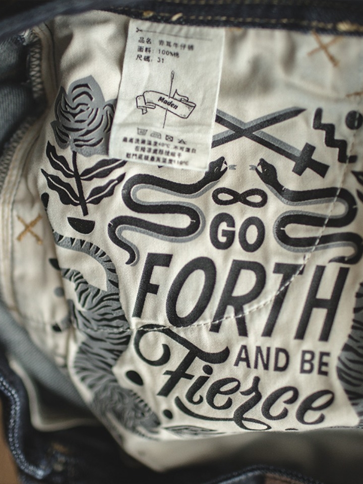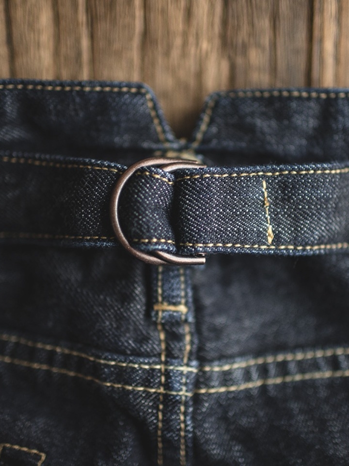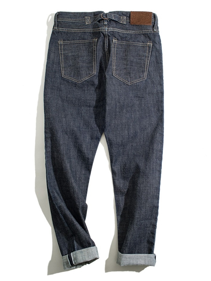 在设计上整体采用了比较舒适帅气的丹宁赤耳面料,虽然厚重但是不缺透气和柔软的上身舒适感。折裤脚之后露出的赤耳风格,也展现了牛仔裤比较高端的象征,帅气百搭之余更加吸睛。背面反绒牛皮的贴标设计,彰显品牌的魅力。