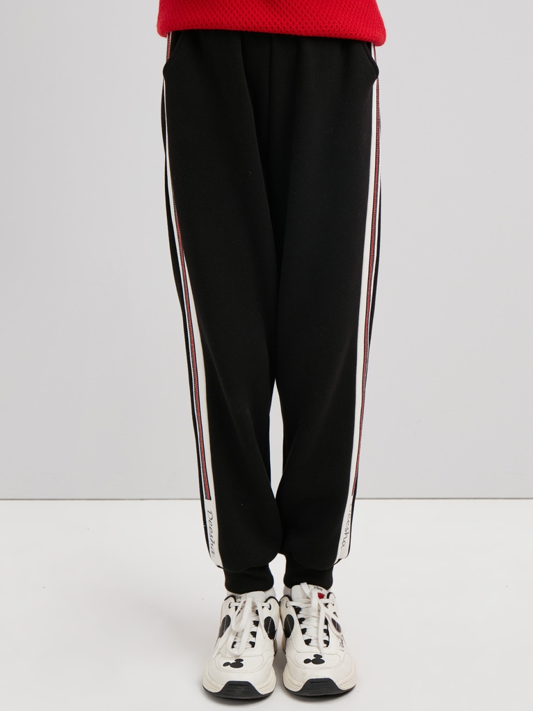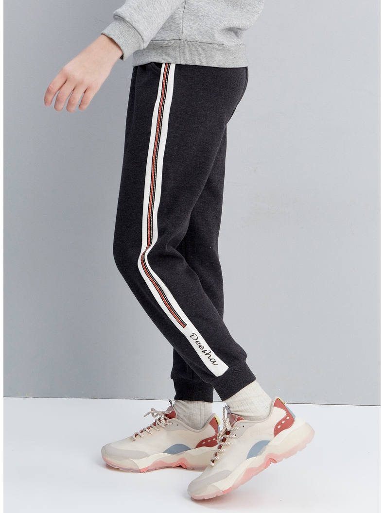 松紧腰运动休闲裤,侧边拼接+撞色字母印花,罗纹裤脚,很适合休闲,运动,秋冬天穿着跑步非常合适。