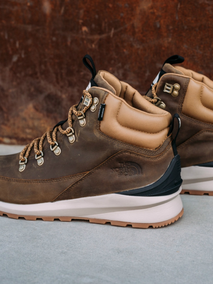 户外体验刺激的运动,鞋子是关键,棕色的登山鞋十分帅气,系带高帮的设计简约而时尚,防水的鞋面十分安心,耐磨防滑的鞋底更加舒适。