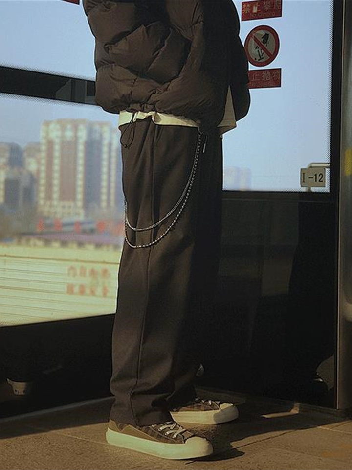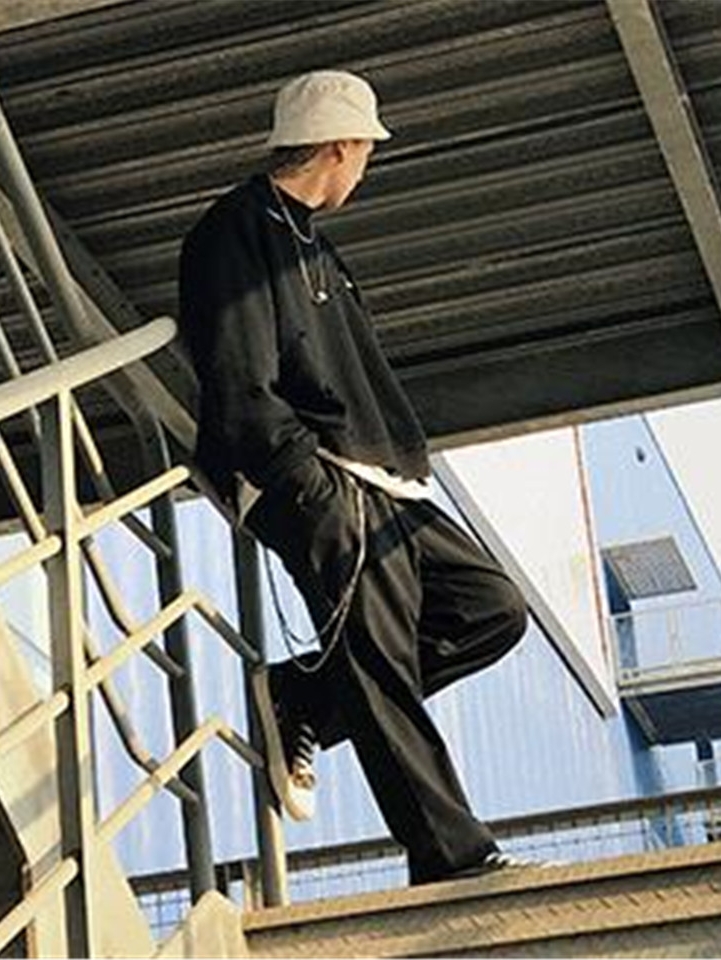 经典大气的深色纯色设计搭配质感十足的宽松阔腿裤版型,轻松包容各种腿型,优化身材比例,时尚吸睛。搭配假两件卫衣,脚踩帆布鞋,轻松彰显出潮男的青春魅力。