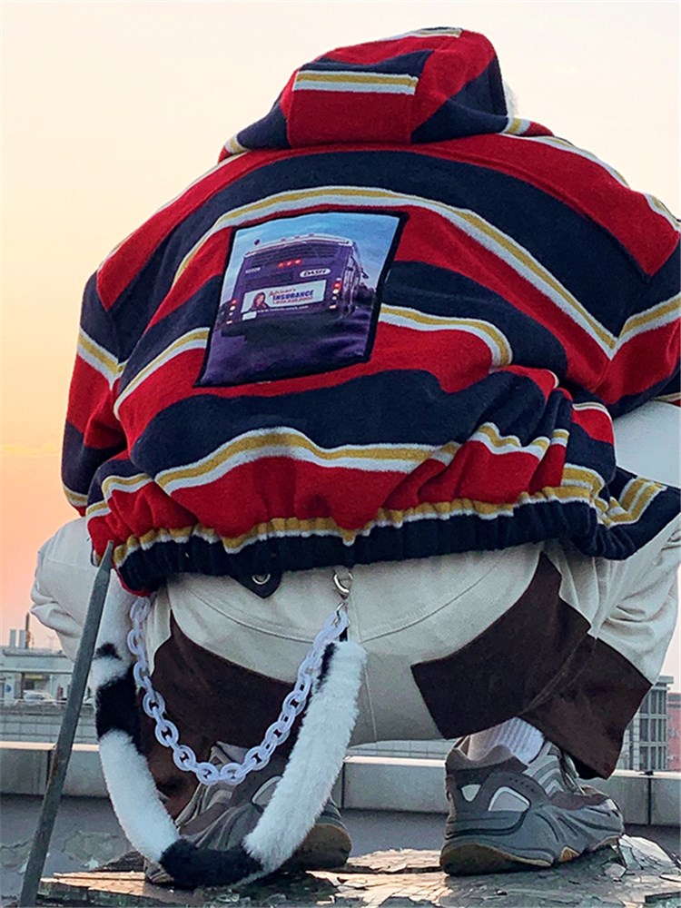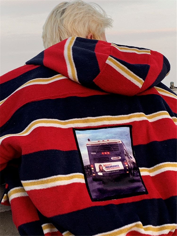 这款外套采用了优质的面料,手感柔软舒适,保暖性好,连帽的设计,防风保暖,胸前的印花图案,充满了青春活力,连帽的设计,防风保暖,穿起来很有个性。