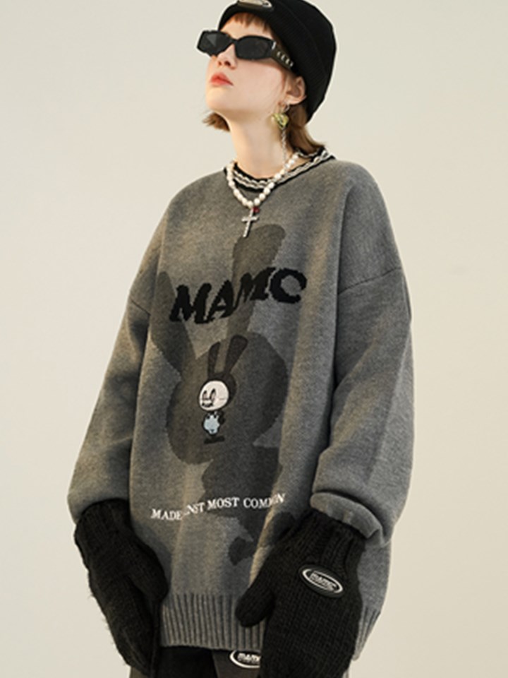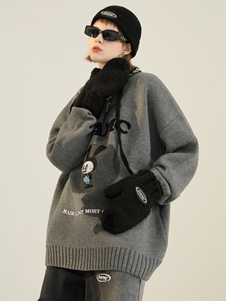 毛衣加上兔子图案点缀,增添几分甜美可爱的风格。