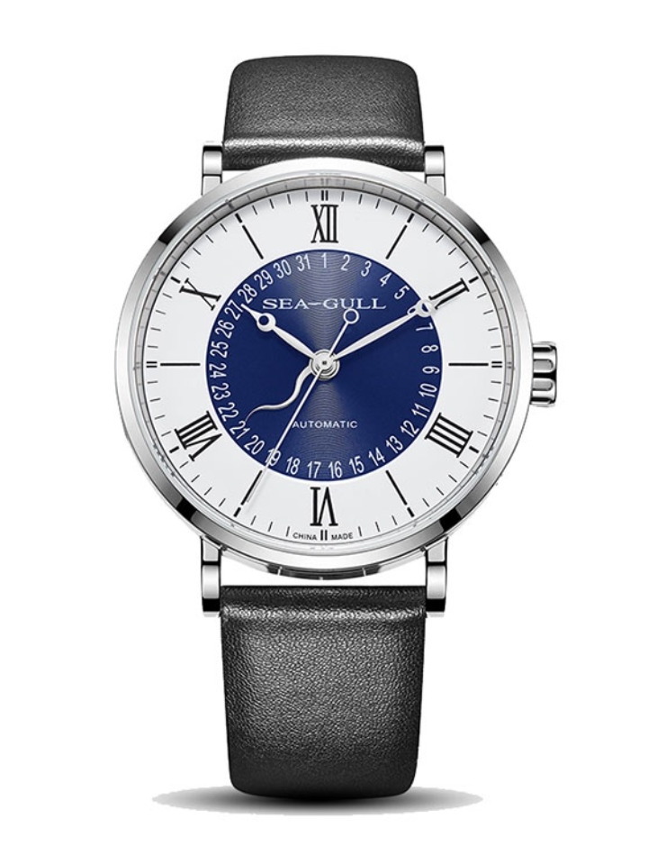 蓝宝石镜面防划耐磨,优异材质,真皮表带,佩带舒适。双按式蝴蝶表扣坚固耐用 ,大开面表盘精雕细琢的绘画和黑色指针,简洁典雅与大表盘一气呵成。