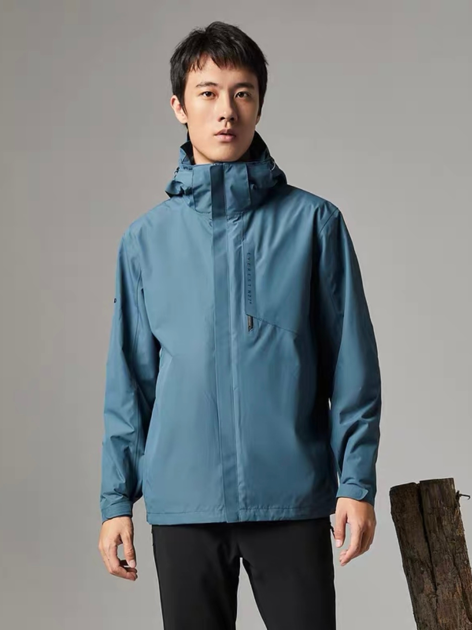 此款探路者户外男士冲锋衣两件套三合一外套,实用尼龙塔丝隆面料,挺括耐磨性好,实用YKK拉链,持久耐用,前胸暗藏挖口袋,前口插袋加长设计,方便背包