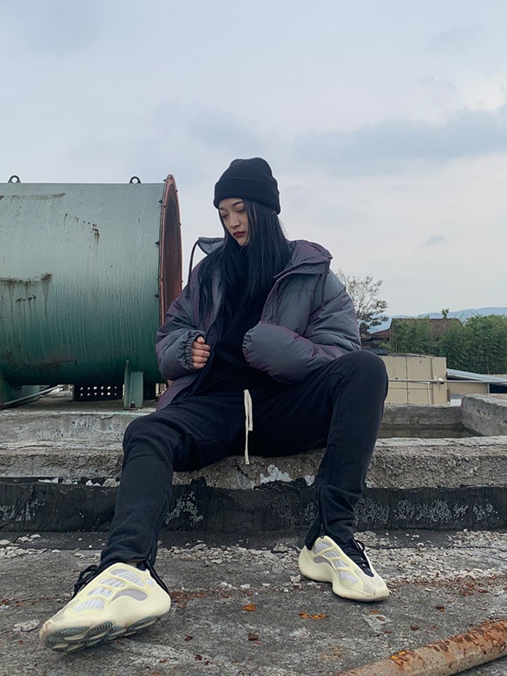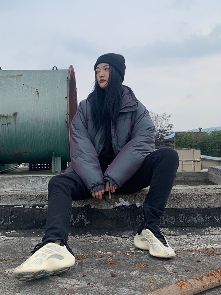 外套可以搭配一条黑色裤子,散发着青春活力。