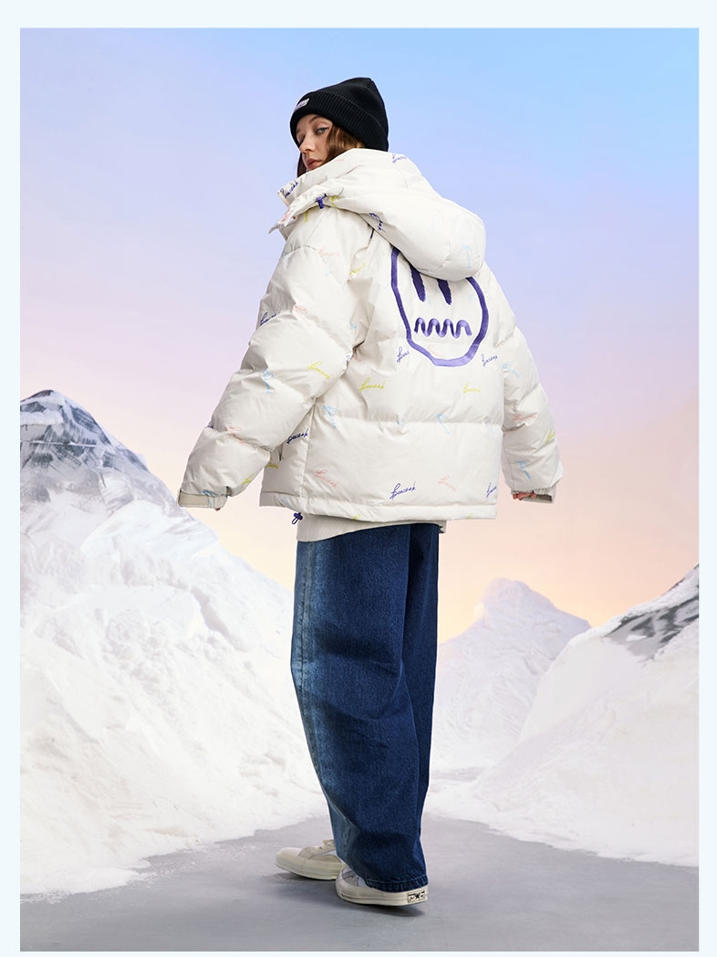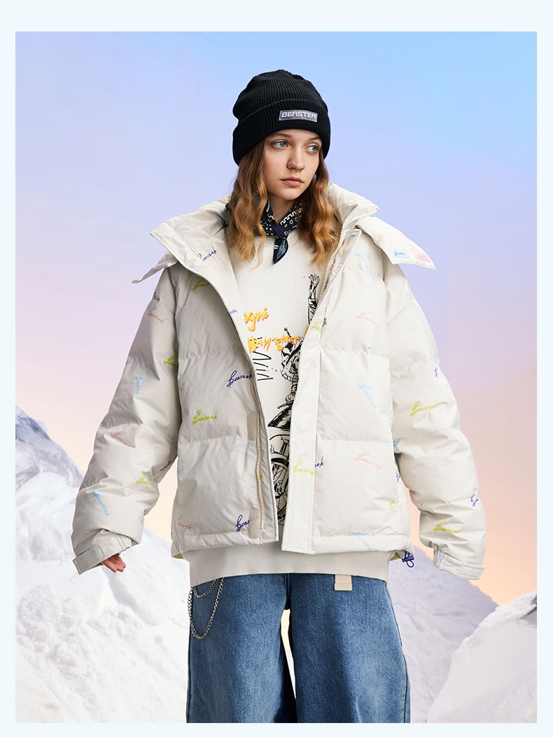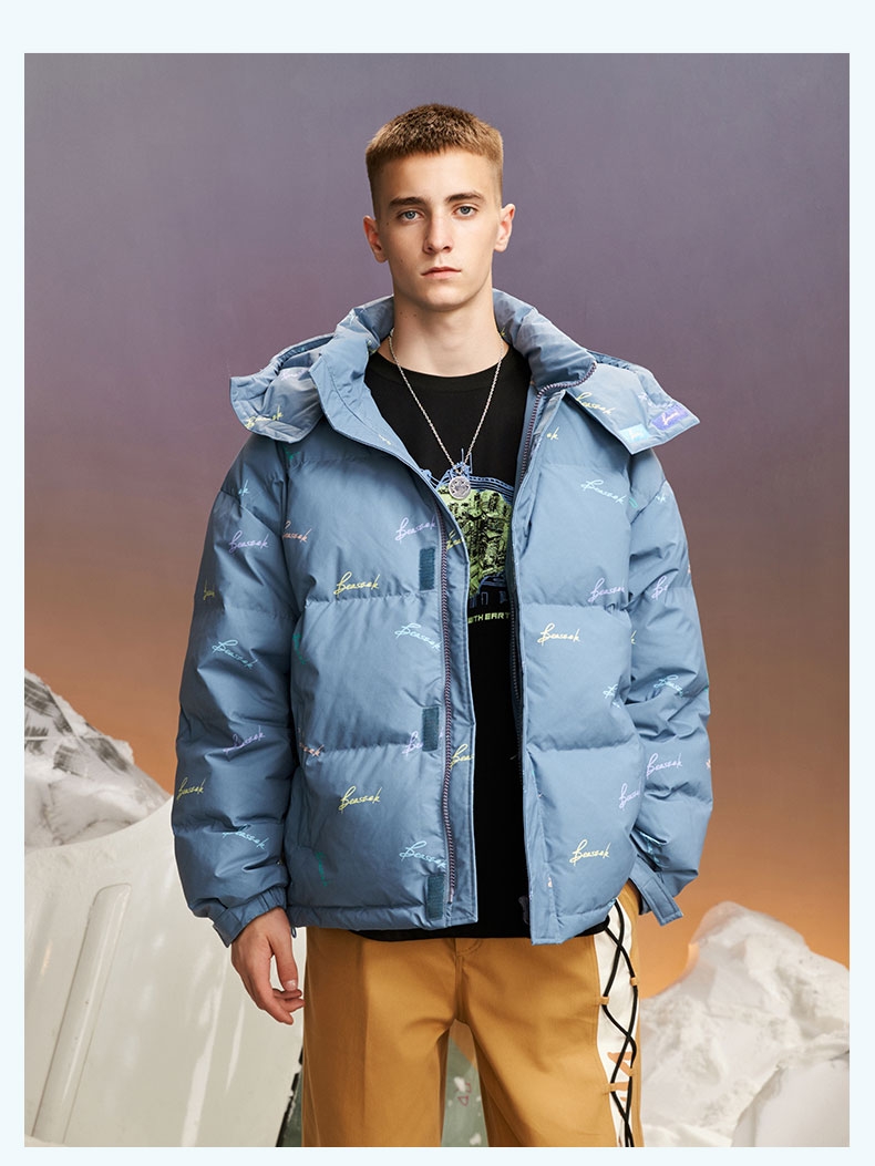 时尚的立领设计,在寒冷的冬季里更好的呵护颈部的温暖与舒适。顺滑的拉链开合直至领口,有效的防止冷空气从脖颈处进入。衣身采用字母印花设计,为单调的整体增添一丝设计感。衣身功能性方形大口袋,装饰美观又实用。