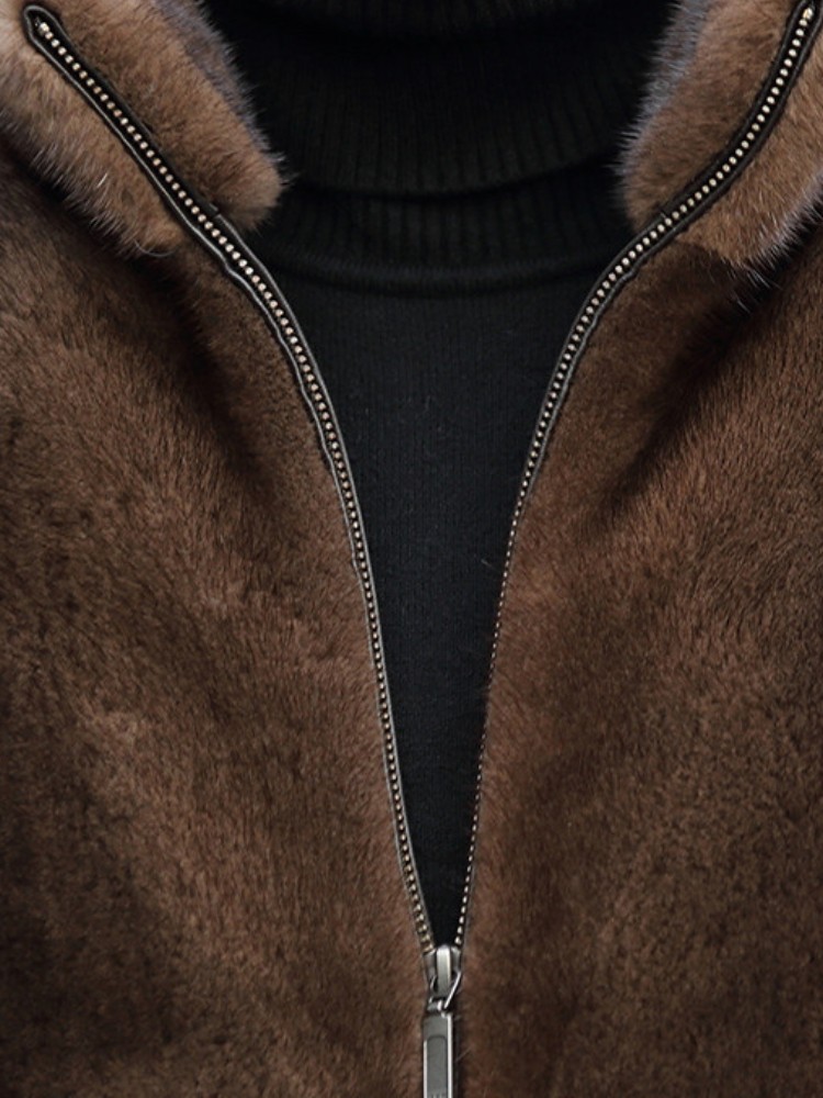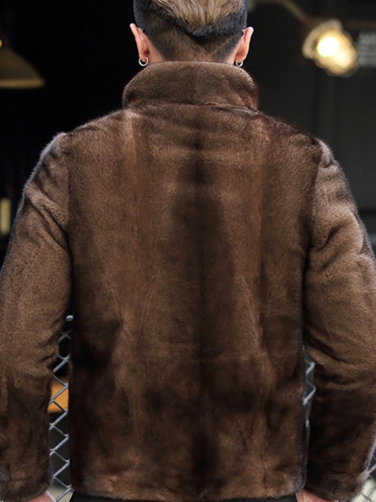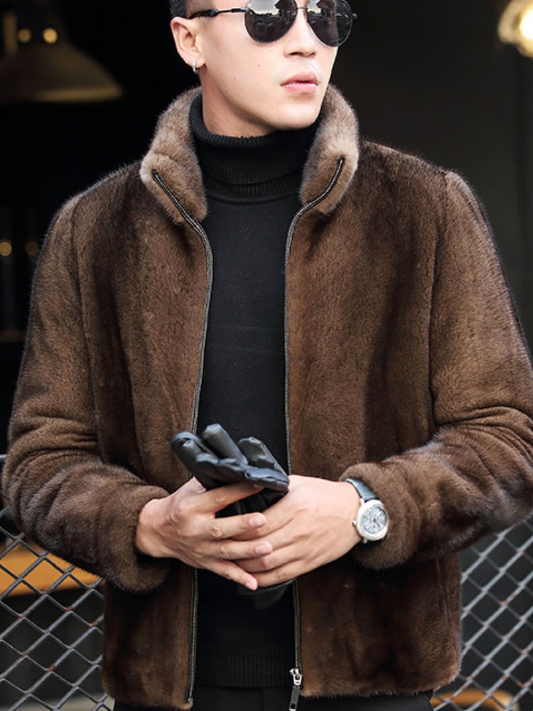 这款皮草外套采用优质的水貂毛领,毛质细腻,质感细腻,彰显品质。经典的翻领设计,凸显男士的干练气质。