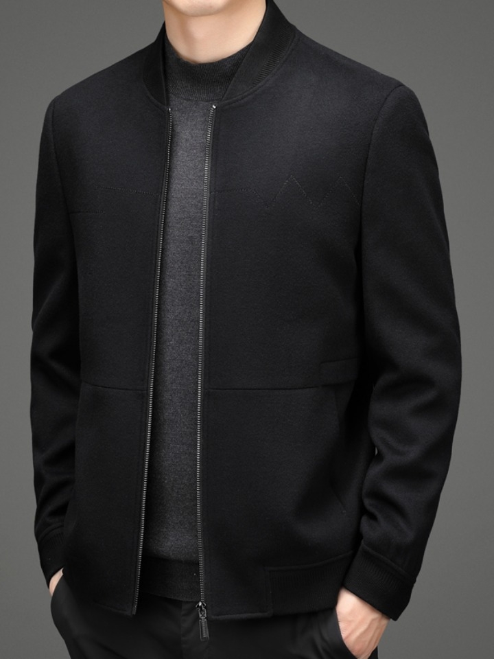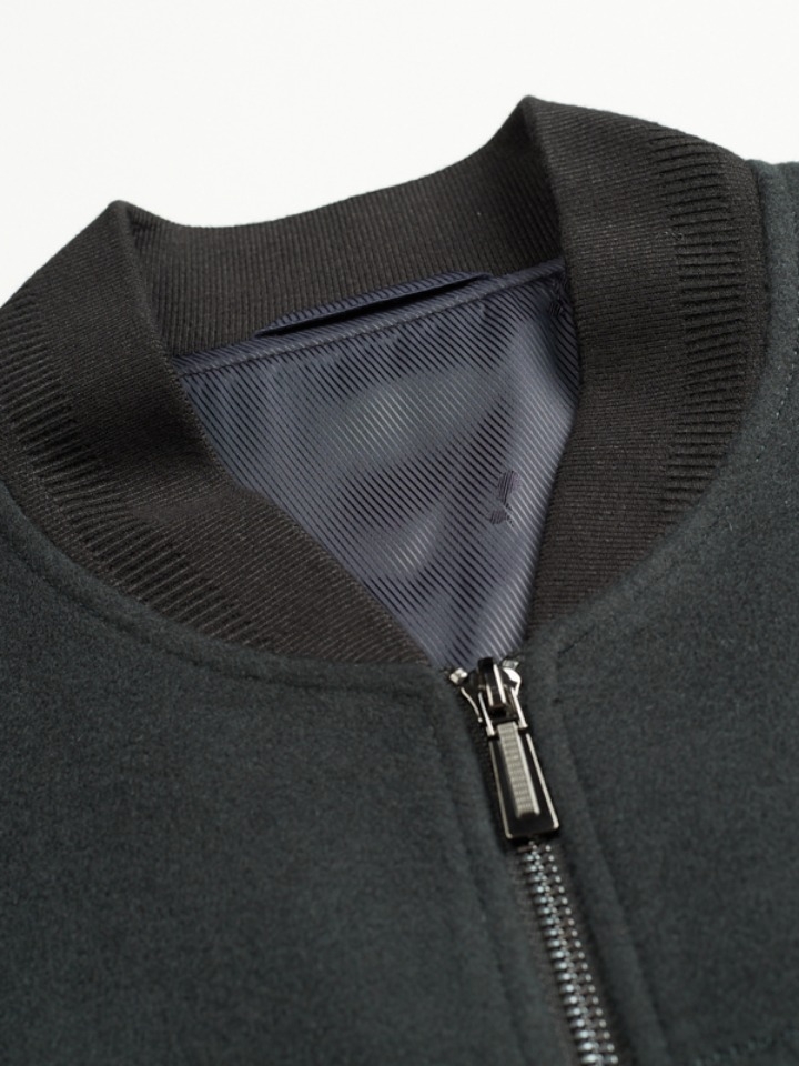 这款夹克外套上身穿着挺括有型,它的短款设计结合上宽松版型,很好的遮盖住身材上的缺点。