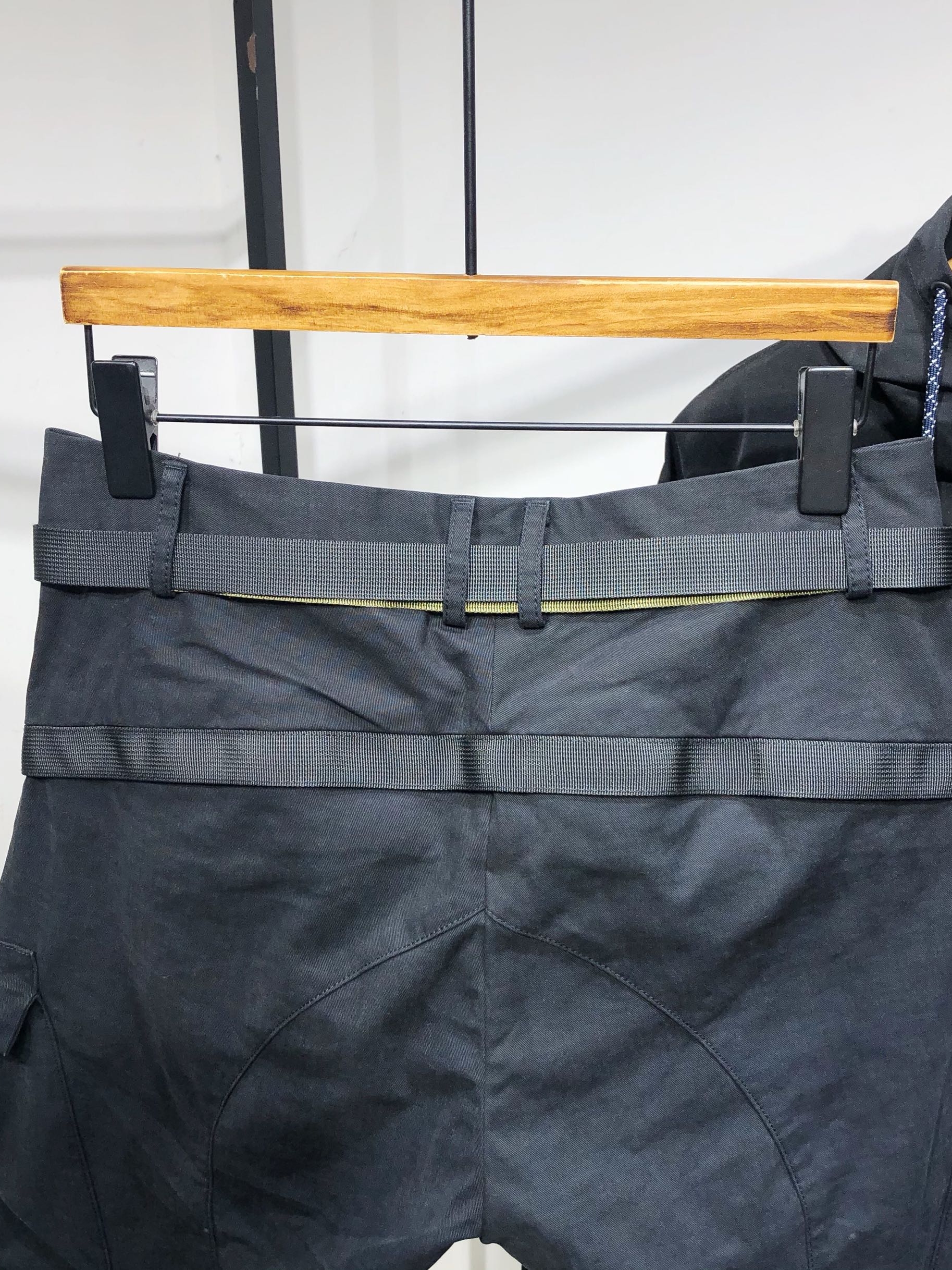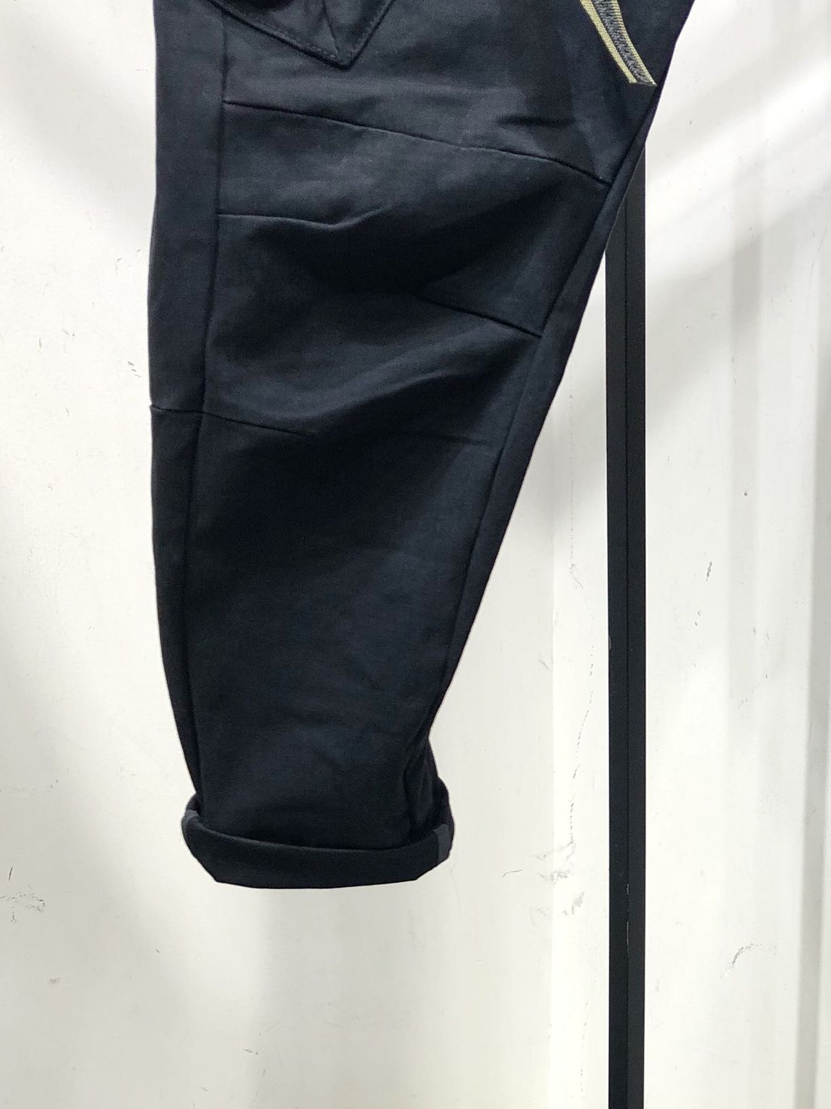 这款时尚的工装裤采用缩脚剪裁,重新诠释了经典军装风。膝部位置为铰接式设计,夸张的大腿口袋和拉链口袋混搭出时尚设计特色。裤子采用优良斜纹布裁制而成,表面有纹理效果。