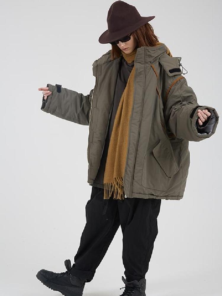 非常好穿的一款中长款棉服,羽绒棉和羊羔毛搭配在一起,为温暖加了不少分,时髦又不显臃肿感,中长款的设计,非常的百搭哟
