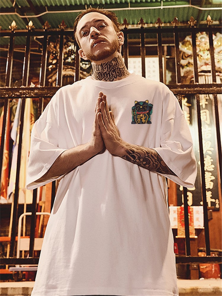 宽松版型,潮流又有范,帅气潮流的版型,简约风贯彻到底,不一样的潮感,穿上运动鞋、懒人鞋,都很有夏日的清新圆领设计,彰显男士魅力,宽松T恤,让你穿着舒适。