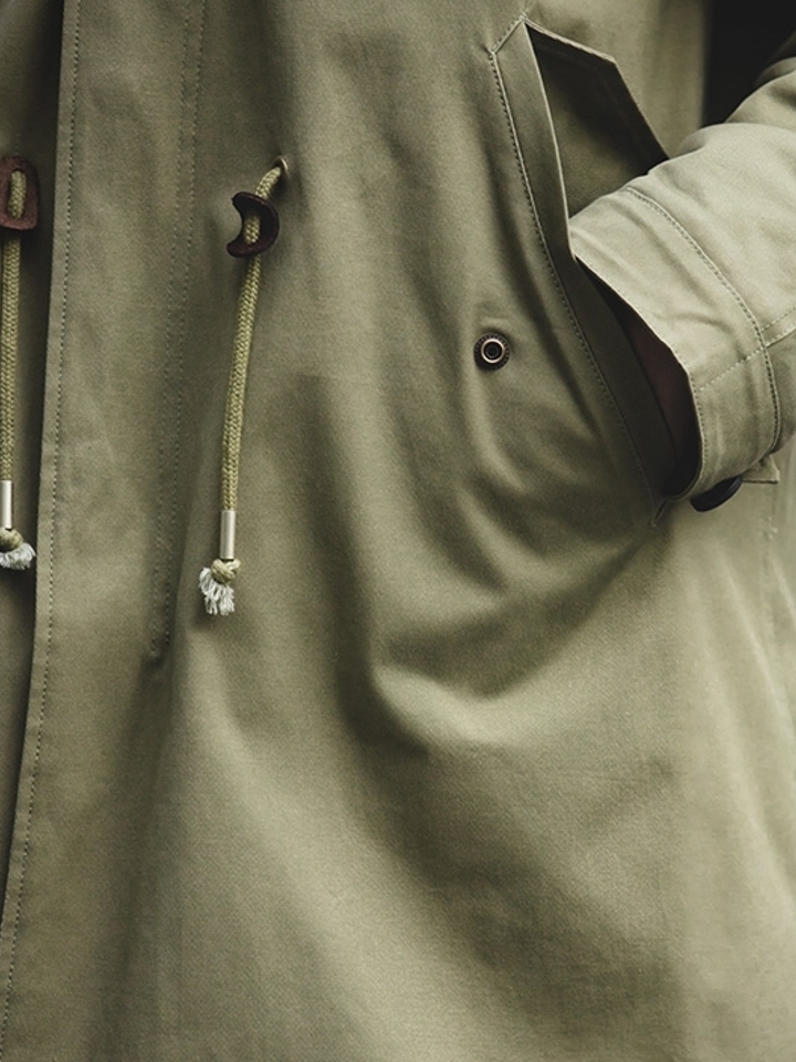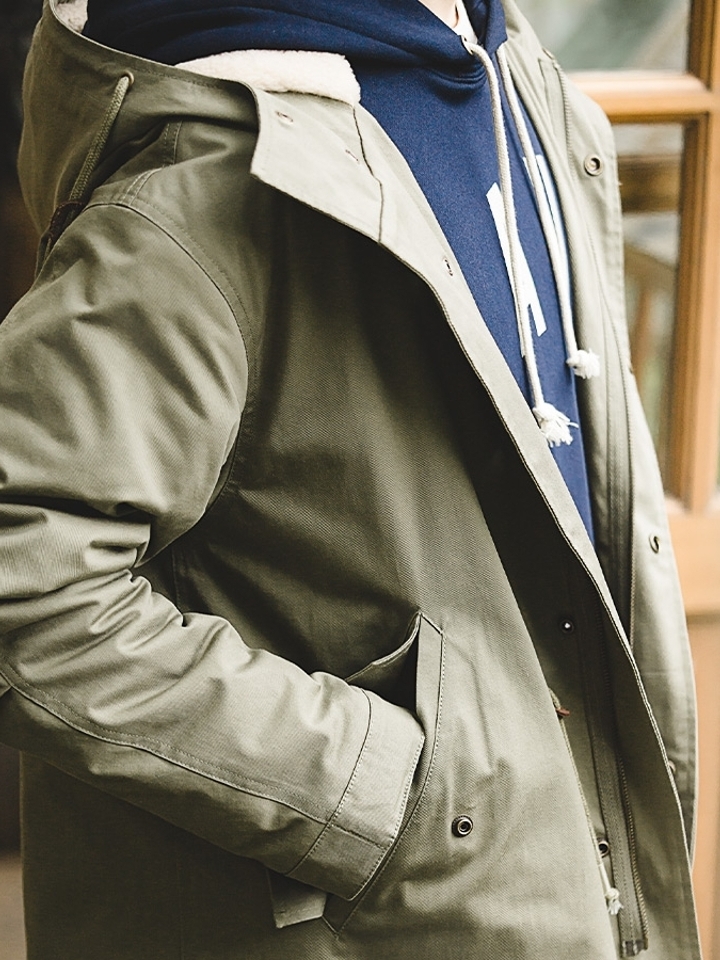 采用高纱支紧密防水透气面料制作,将战地夹克的灵感元素和具有现代感的版型相结合,同时具备功能和时尚。立领设计保暖的同时又是凹造型的利器,融入派克元素,打造时尚潮流感。