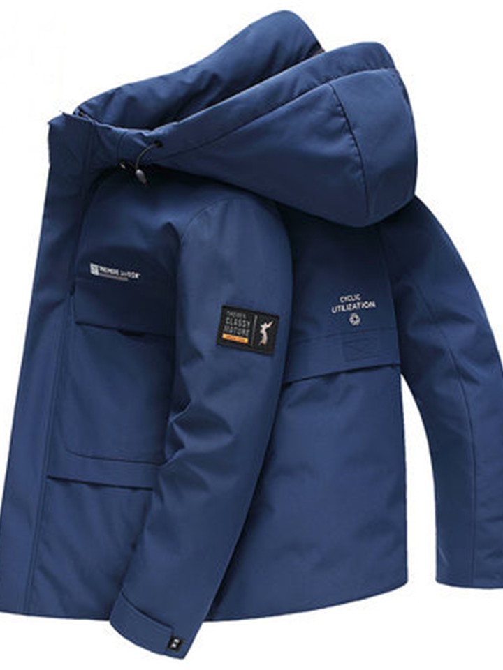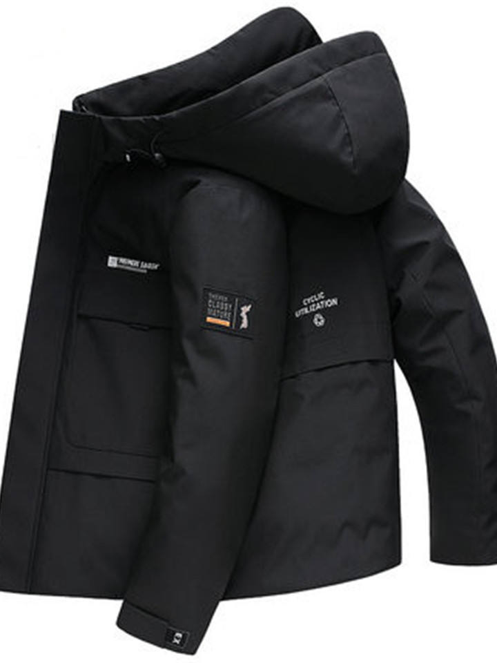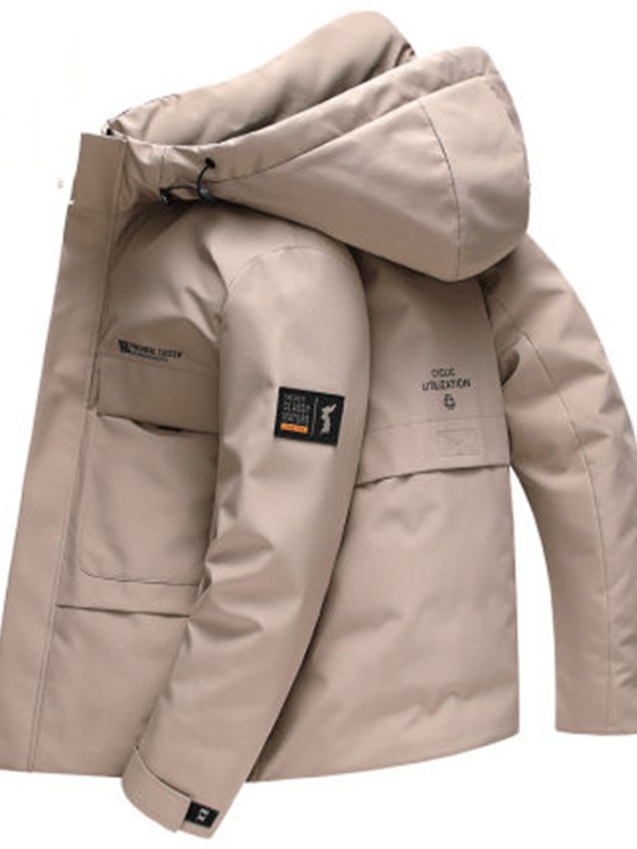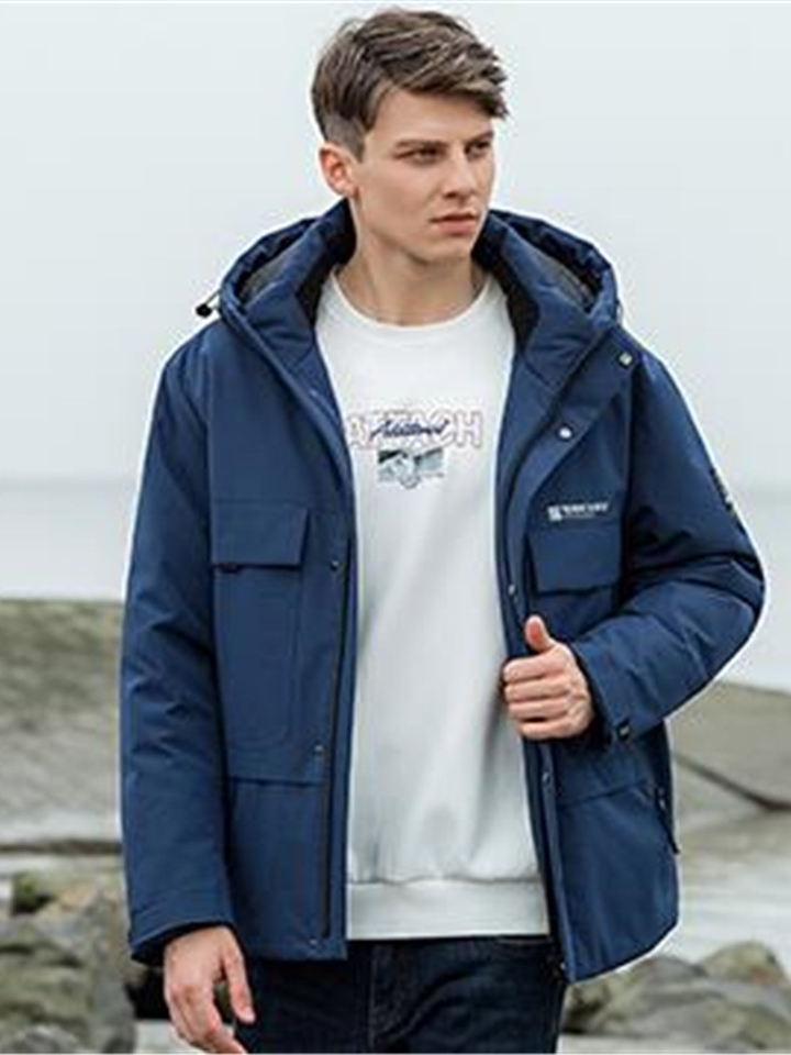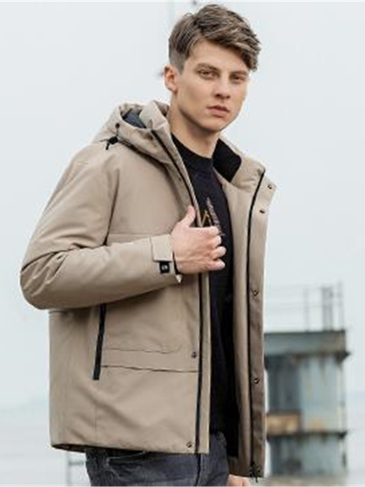 短款连帽羽绒服,时尚短款设计,很是显高显瘦,简单的连帽款式,上身立马男神范十足。内搭印花卫衣,下穿牛仔裤,展现酷帅有型的潮男气质。