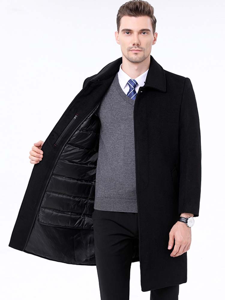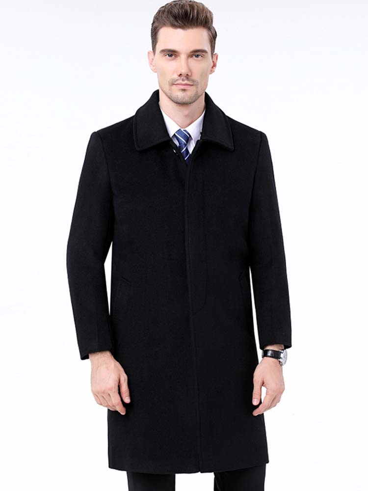 大方的西装领子大衣,纯黑底色显得严谨大气,非常经典而百搭。中长款的版型,让穿着更加时尚大方。