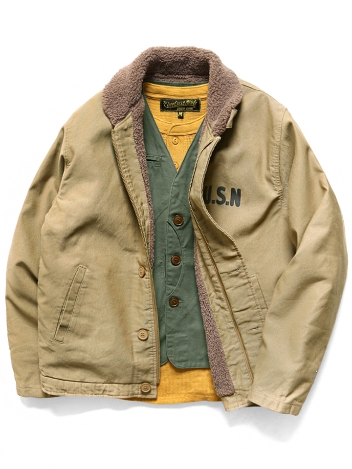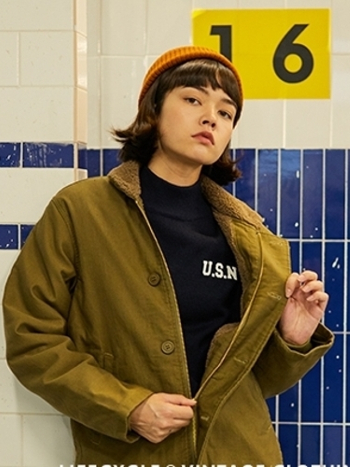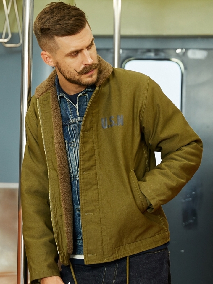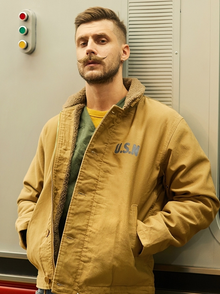 重工轻防水的帆布机车外套,重磅过蜡轻防水帆布面料羊毛混纺内里,延续了美系的原始复古精髓,结合新设计应用,打造出全新的怀旧硬汉气质!美式机车厚实质感,呈现出怀旧质感。