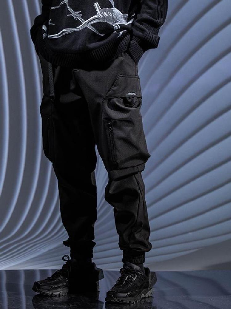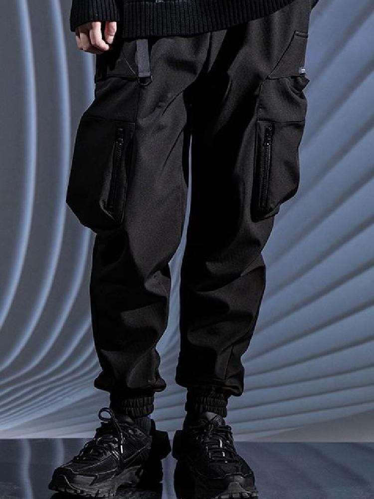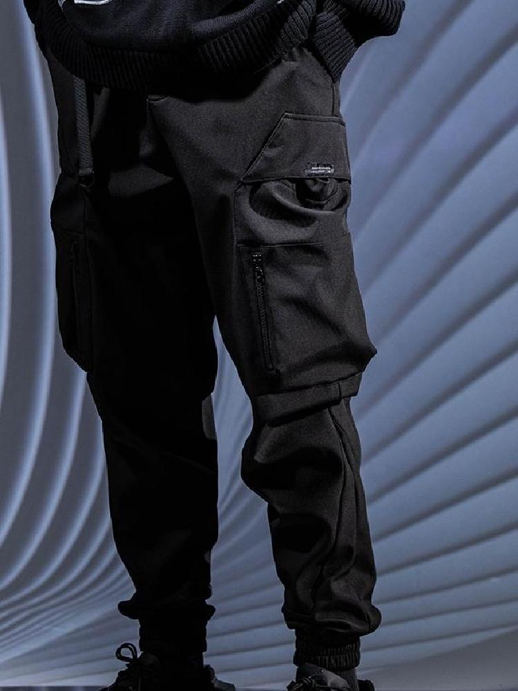 Vhiphop 唯舞此款休闲裤采用锥形束脚裤型设计,裤腿加入类似工装裤的双贴袋,实用又有范儿,裤身采用纯棉弹力面料,不易起球变形,内部加绒处理,舒适