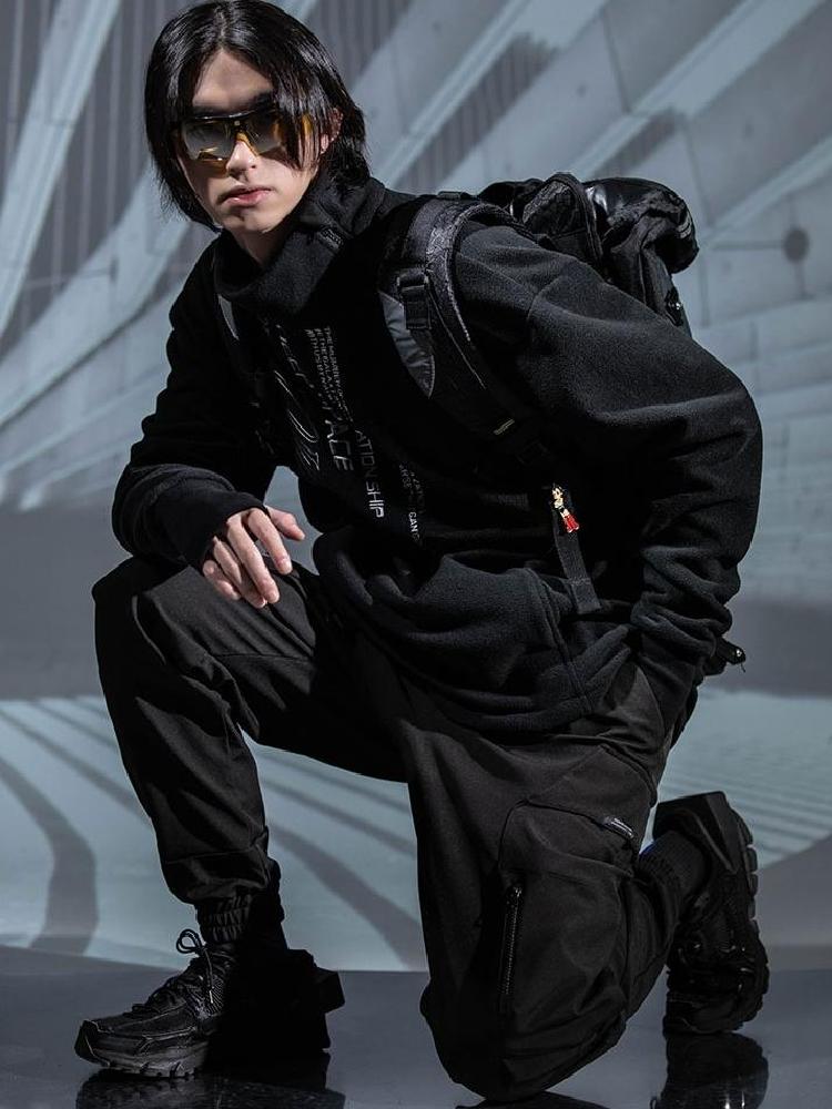 此款男士长裤工装版型宽松,上身舒适得体。定制的优质面料,内里加绒加厚保暖性能优越。整洁的纯色版面,两侧添加的口袋装饰呈现复古日系风格调。松紧中腰处可调节抽绳便于穿脱。小脚裤腿的设计结合罗纹收口,修饰了腿部线条显高显瘦。